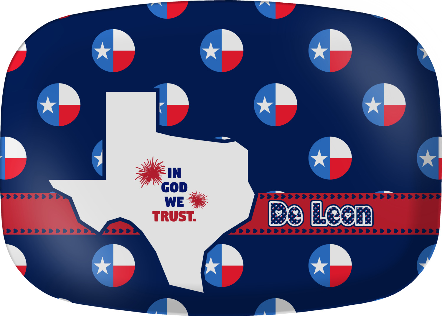 Calling all Texas State lovers. Everything is bigger in Texas and this Texas design is no different. The State of Texas is front and center surrounded by the State flag in the fun shape of polka dots.