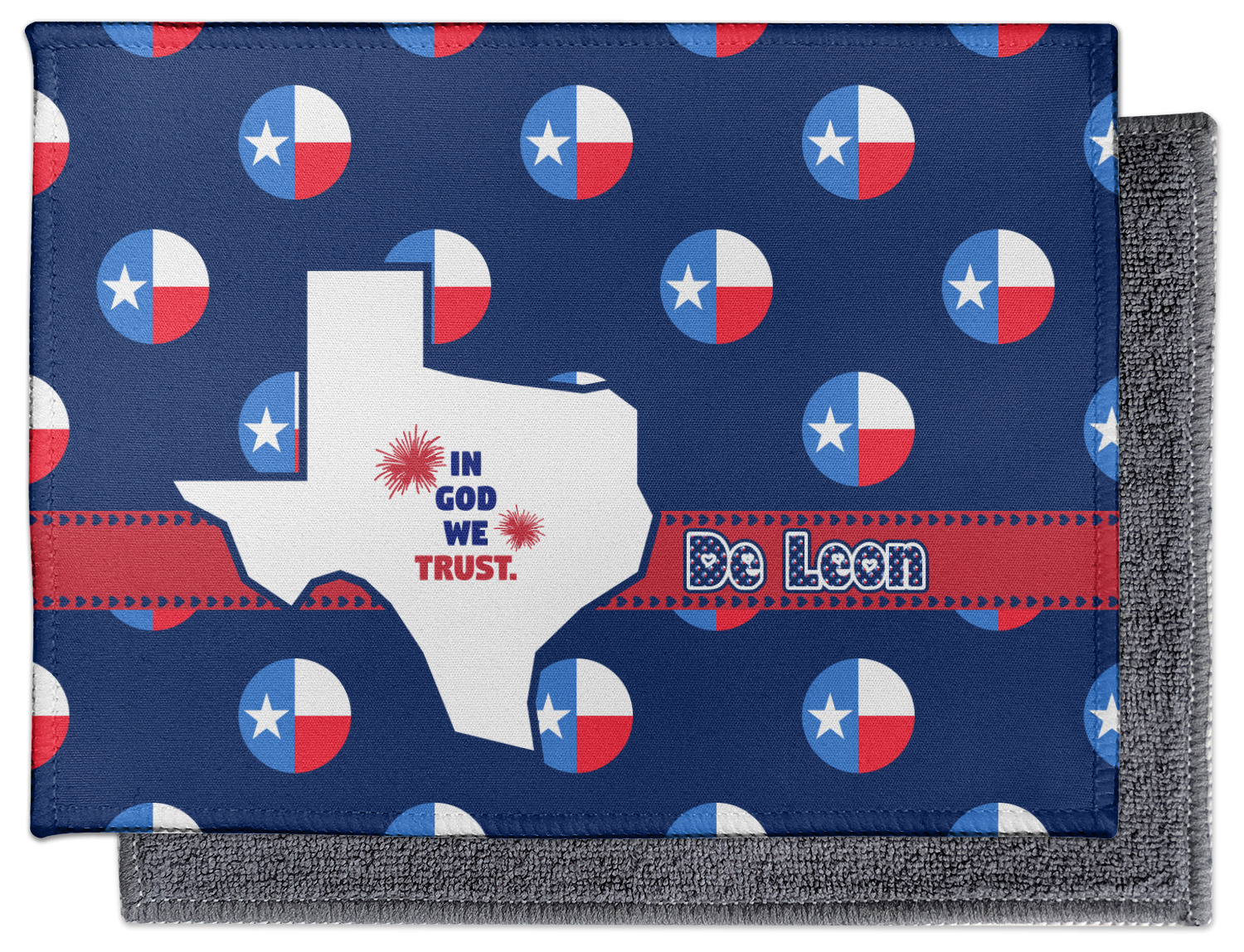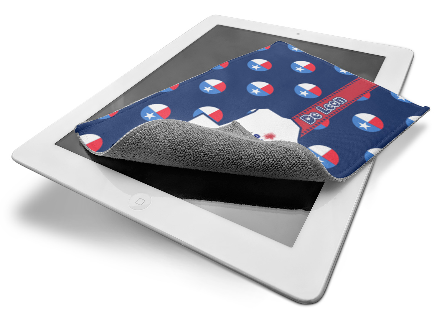 The back of this cleaning cloth is made from a gentle, grey microfiber material, that is masterful at removing smudges, grease, and fingerprints from lenses or electronic screens. The front side of the screen cleaner displays your personalized design in vibrant color. A beautiful stitch lines the edges and secures the microfiber to the polyester top. We provide you with the option of customizing this screen horizontally or vertically, depending on your preferences.