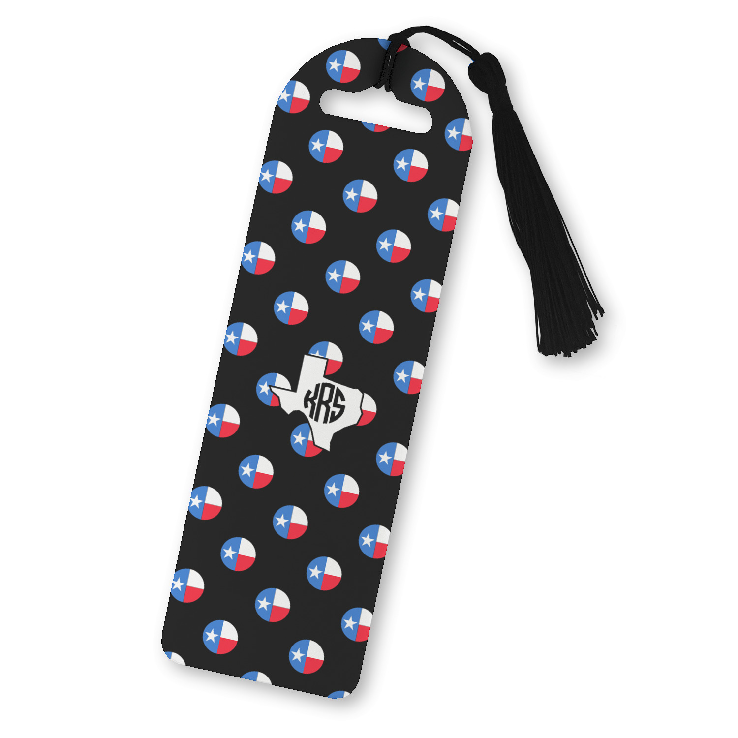 Made from a durable, flexible plastic, these bookmarks are printed with your custom design on them. With the tassel on them they make it easy to find your page in your book. These are a rectangular shape 7 1/4 inches tall with a rounded top and are approximately 2 1/4 inches wide.