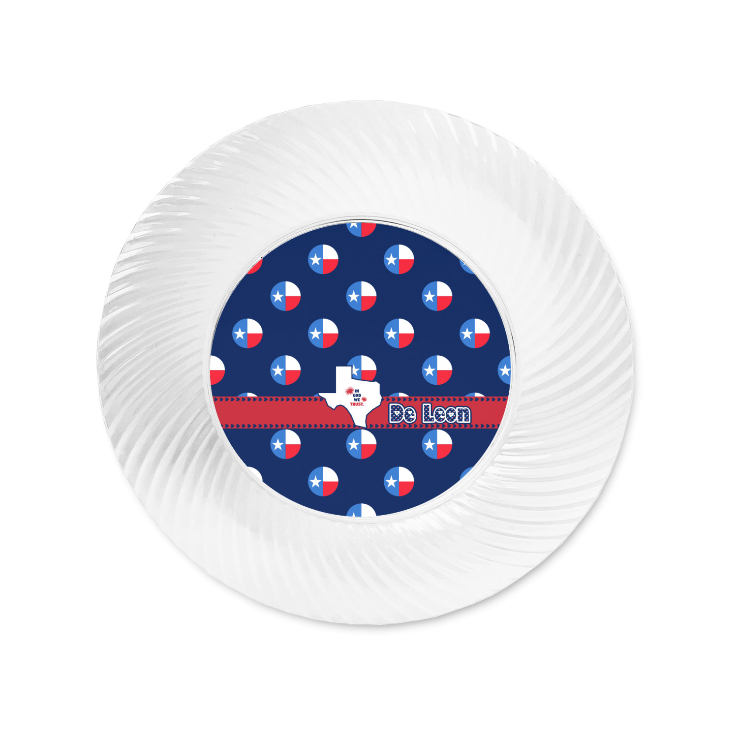 Made from a beautiful clear plastic plate as a base, your design is printed to the underside of the plate. The outside of the plate has a classic swirl texture to it for a high quality look and feel.
