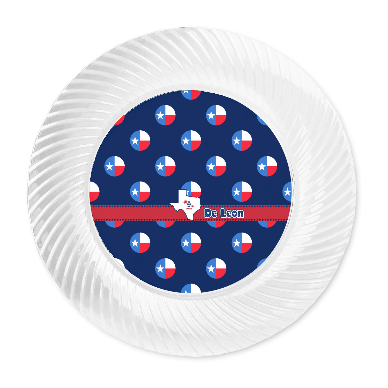 Made from a beautiful clear plastic plate as a base, your design is printed to the underside of the plate. The outside of these disposable plates has a classic swirl texture to it for a high quality look and feel.