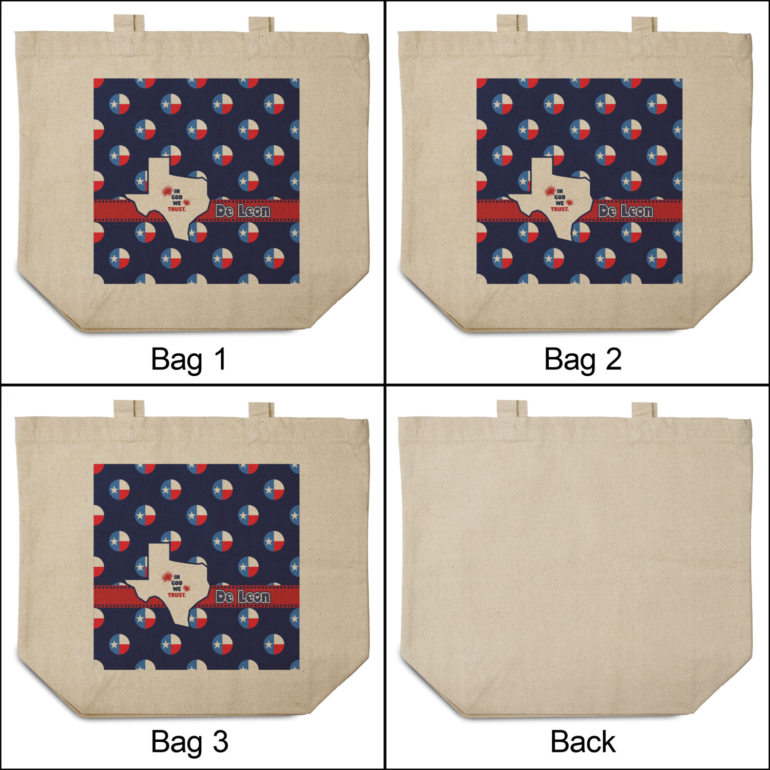 These cotton totes are washable and easy to care for, and they can be folded flat for storage. Your artwork, logo, or photo is printed in full color directly on the cotton tote in the front.