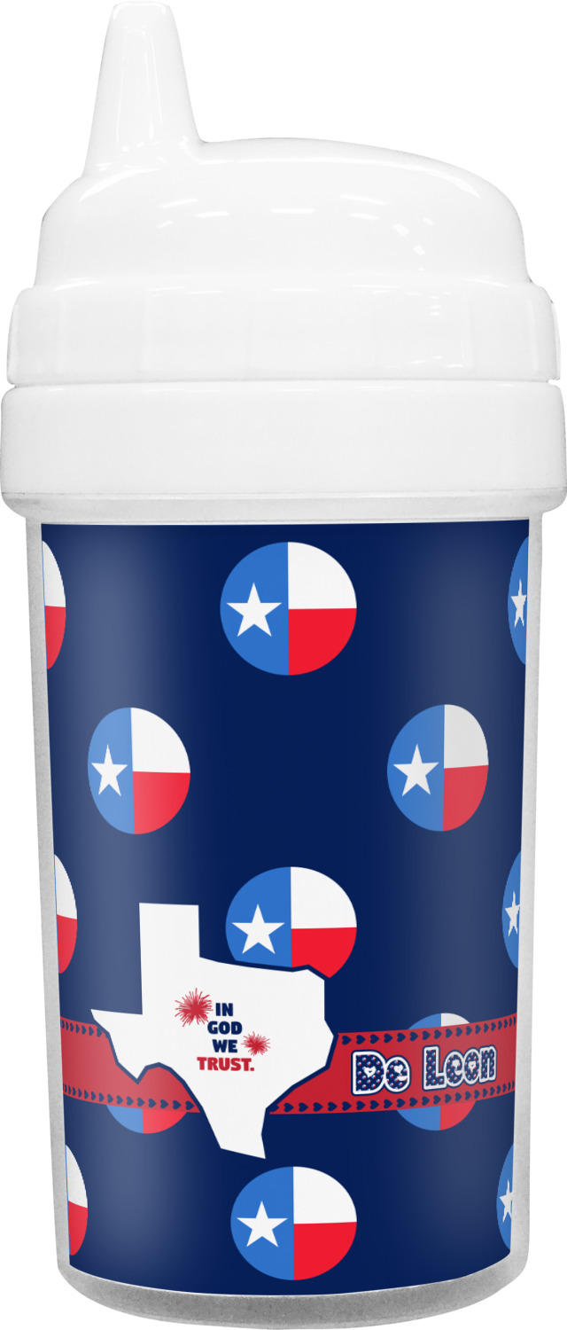 Our toddler cups are free of BPA, and have a twist-open lid so that you can easily fill and clean these cups for your young ones. Each cup also comes with a sippy nozzle to reduce spills. We offer these custom sippy cups in two different sizes; we have a baby sippy cup that holds 5 ounces, and a toddler sippy cup that holds 10 ounces. Your customization is printed on a premium glossy media insert that is placed within these toddler drinking cups.