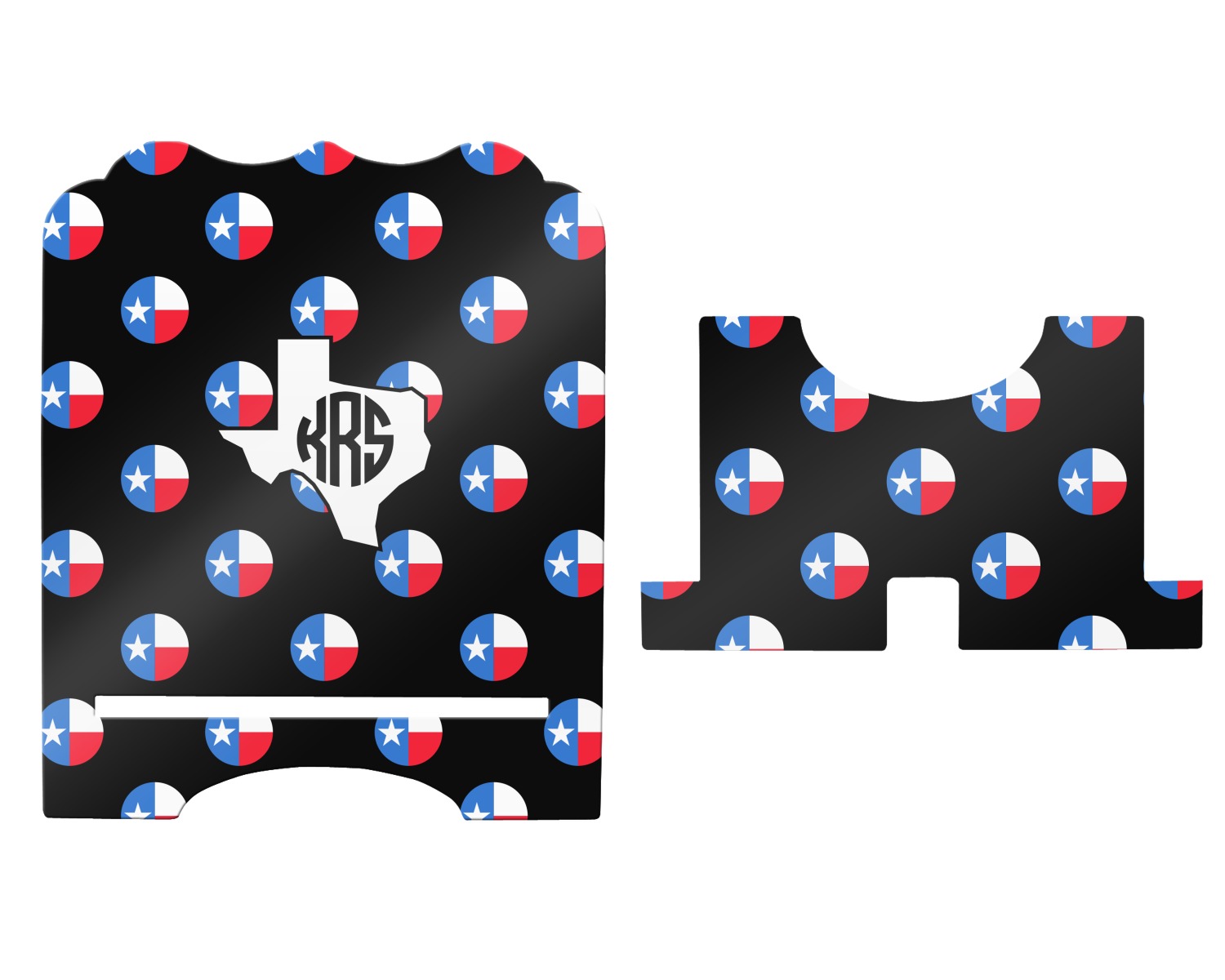 Calling all Texas State lovers. Everything is bigger in Texas and this Texas design is no different. The State of Texas is front and center surrounded by the State flag in the fun shape of polka dots.