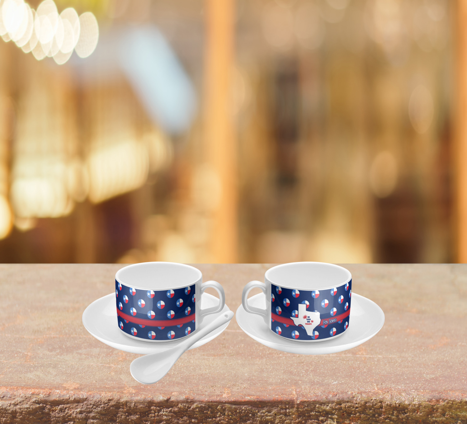 Personalize your cup with the perfect design! The white ceramic makes for a bright background to whatever personalization you decide to add to your little cup. Give your tea or coffee some class! Choose from thousands of patterns and fills in our system to fit your personality! Change whatever elements you like from the text to the ribbons to the graphics.