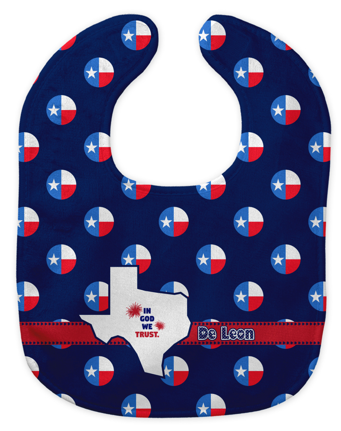 Made of soft polyester, each customizable bib hugs comfortably around the neck to catch every drip and drool. Each bib design is printed with baby-safe ink and finished with a secure stitch pattern and velcro clasp. We carry two customizable bib styles -Microfiber Velour and Jersey Knit.