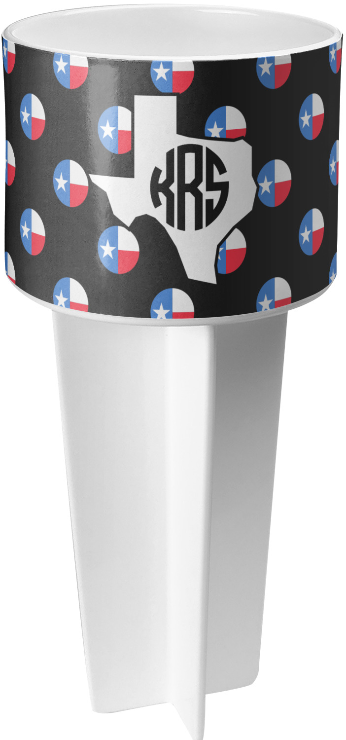 This cup holder has a large stake at its bottom that anchors it to the sand or ground below, while the cup holder rests above the stake. The entire drink holder is made of durable plastic and displays your customization around the cup holder portion. We sell these personalized beach spikers in two different colors: black and white.