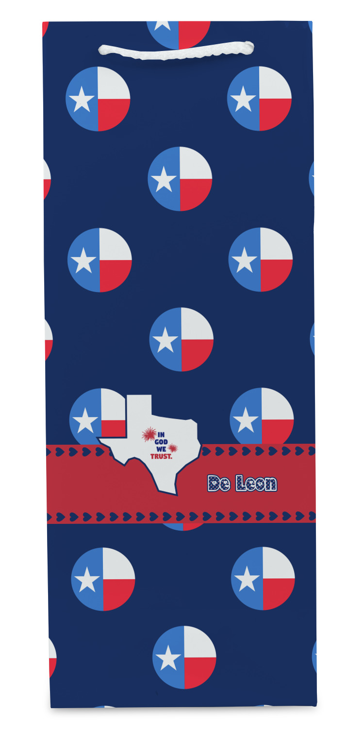 Our wine bags are printed on premium paper. The bags are then cut, scored and folded. The handles and cardstock base it attached. These custom wine bags are printed and made in the USA.