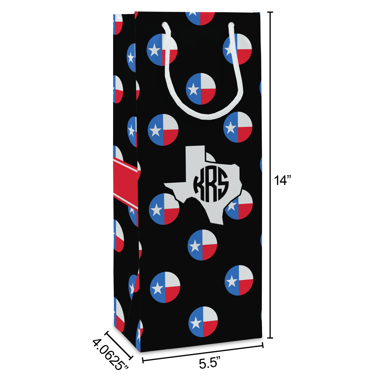 Our wine bags are printed on premium paper. The bags are then cut, scored and folded. The handles and cardstock base it attached. These custom wine bags are printed and made in the USA.