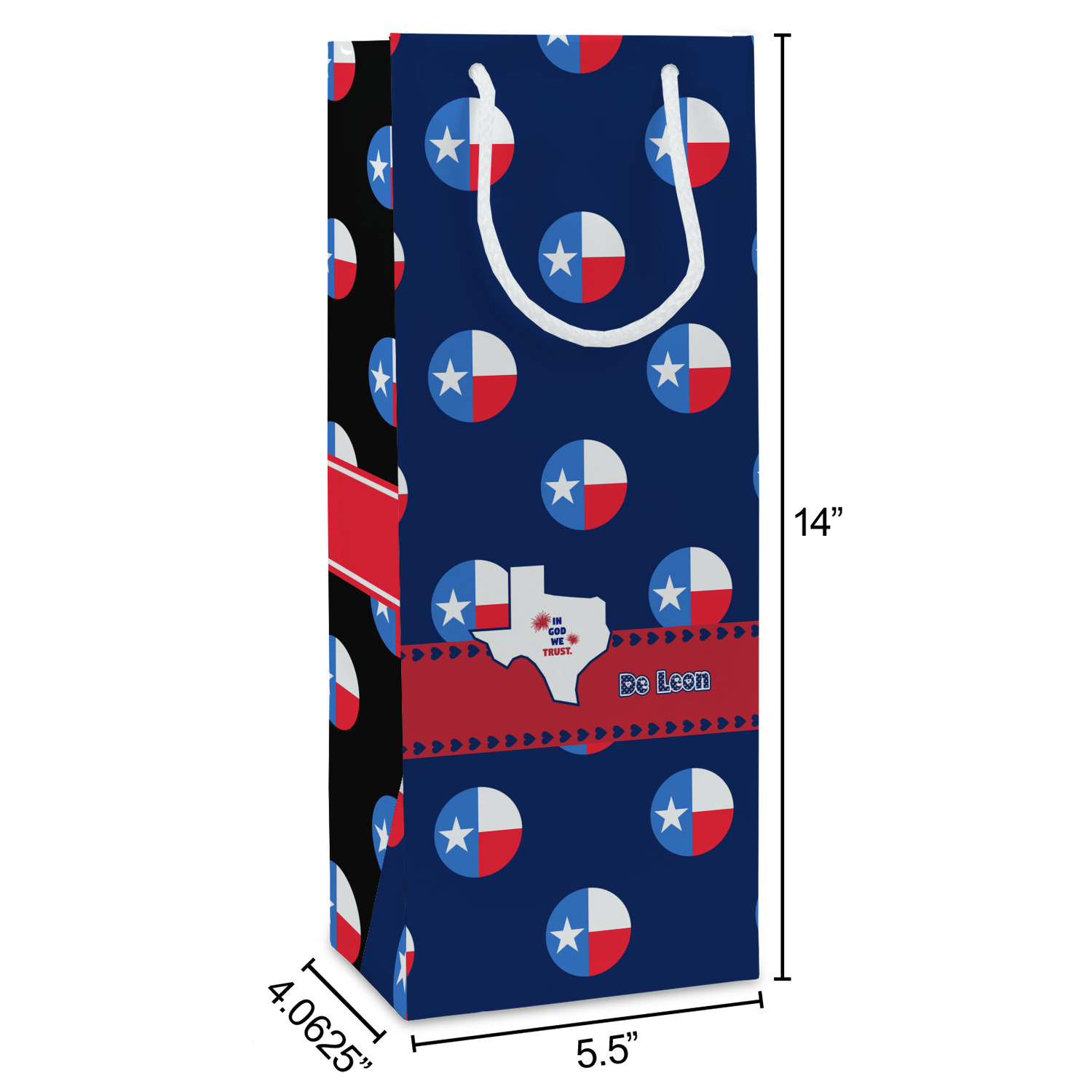 Our wine bags are printed on premium paper. The bags are then cut, scored and folded. The handles and cardstock base it attached. These custom wine bags are printed and made in the USA.