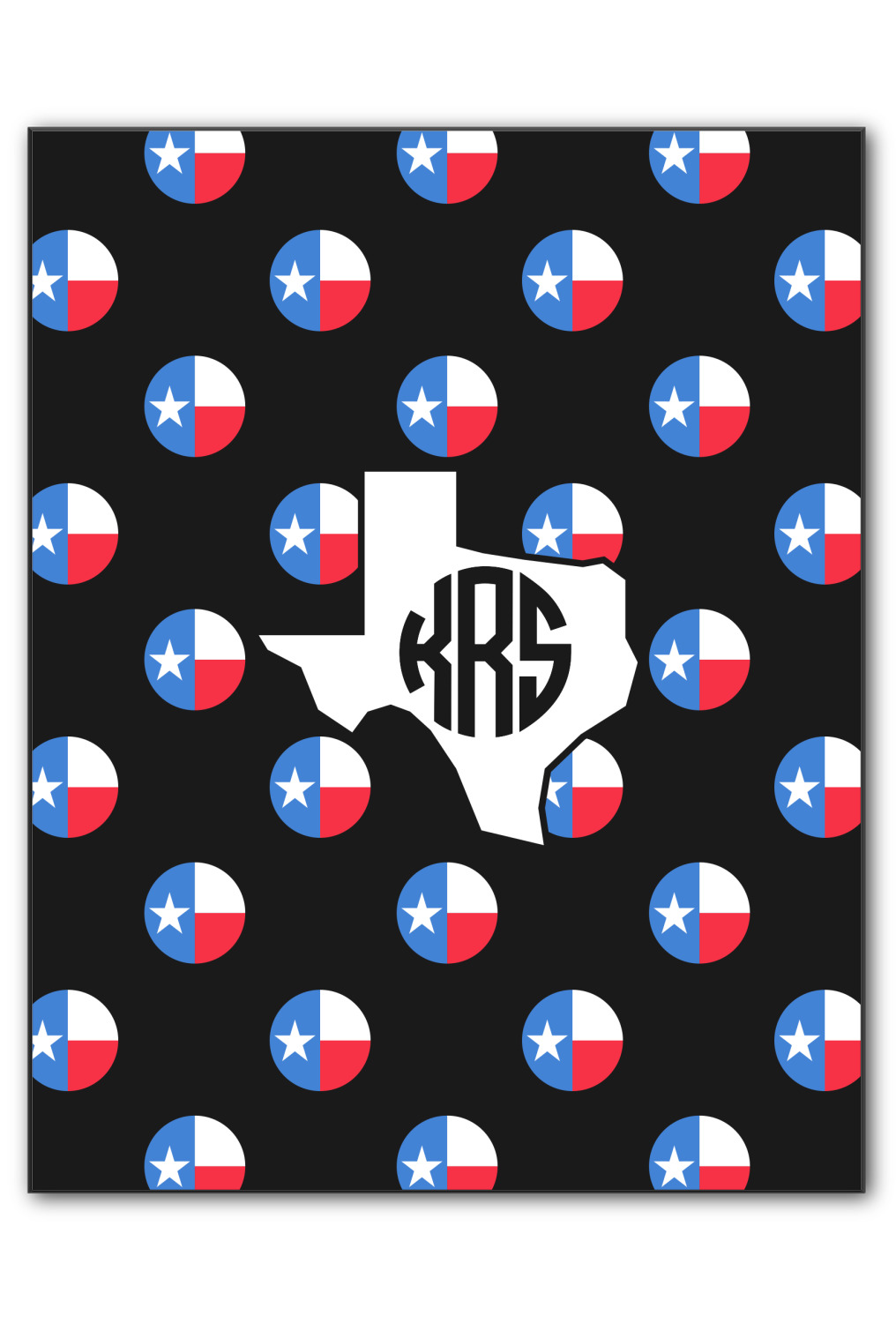 Calling all Texas State lovers. Everything is bigger in Texas and this Texas design is no different. The State of Texas is front and center surrounded by the State flag in the fun shape of polka dots.