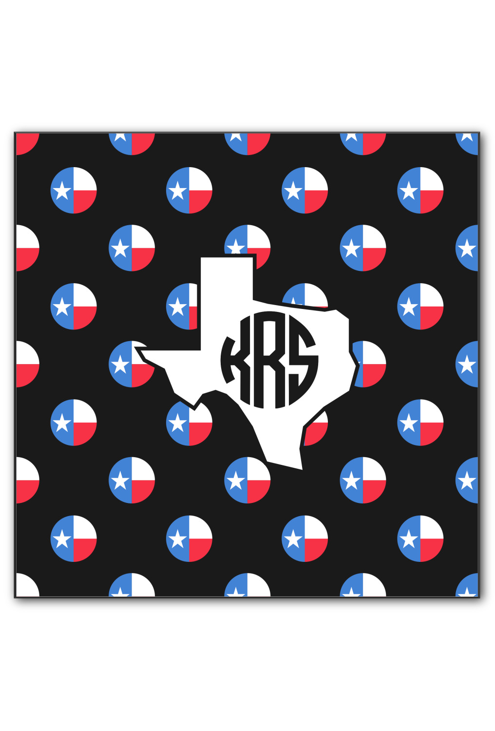Calling all Texas State lovers. Everything is bigger in Texas and this Texas design is no different. The State of Texas is front and center surrounded by the State flag in the fun shape of polka dots.