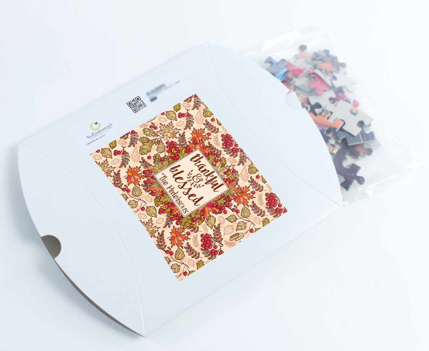You can also upload your logo or art that you or your kids drew. To create more challenging jigsaw puzzles, you can create a pattern from with your logo or artwork. You can also add other elements such as text or personalization.