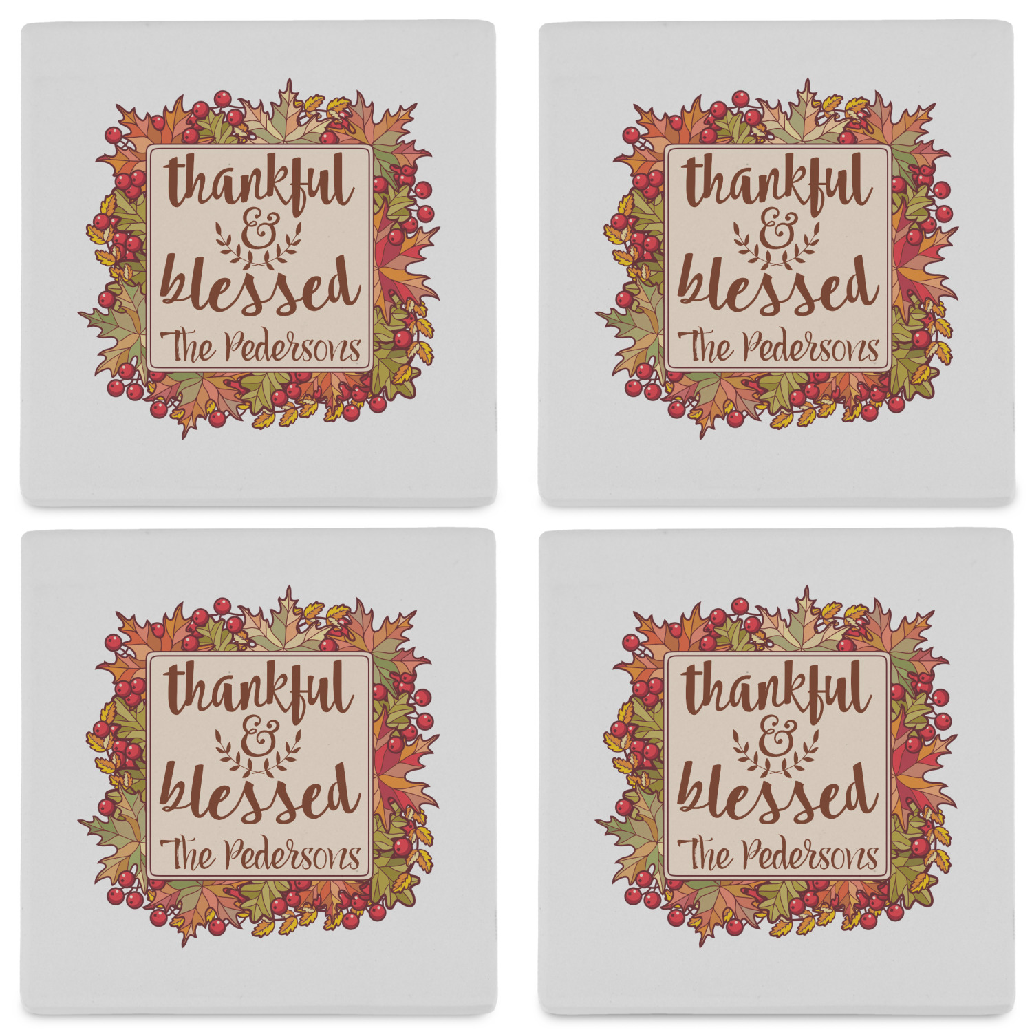 By default, the 4 coasters all have the same design on them, however, you can change that and have a different design on each one of the 4 coasters. The choice is yours.