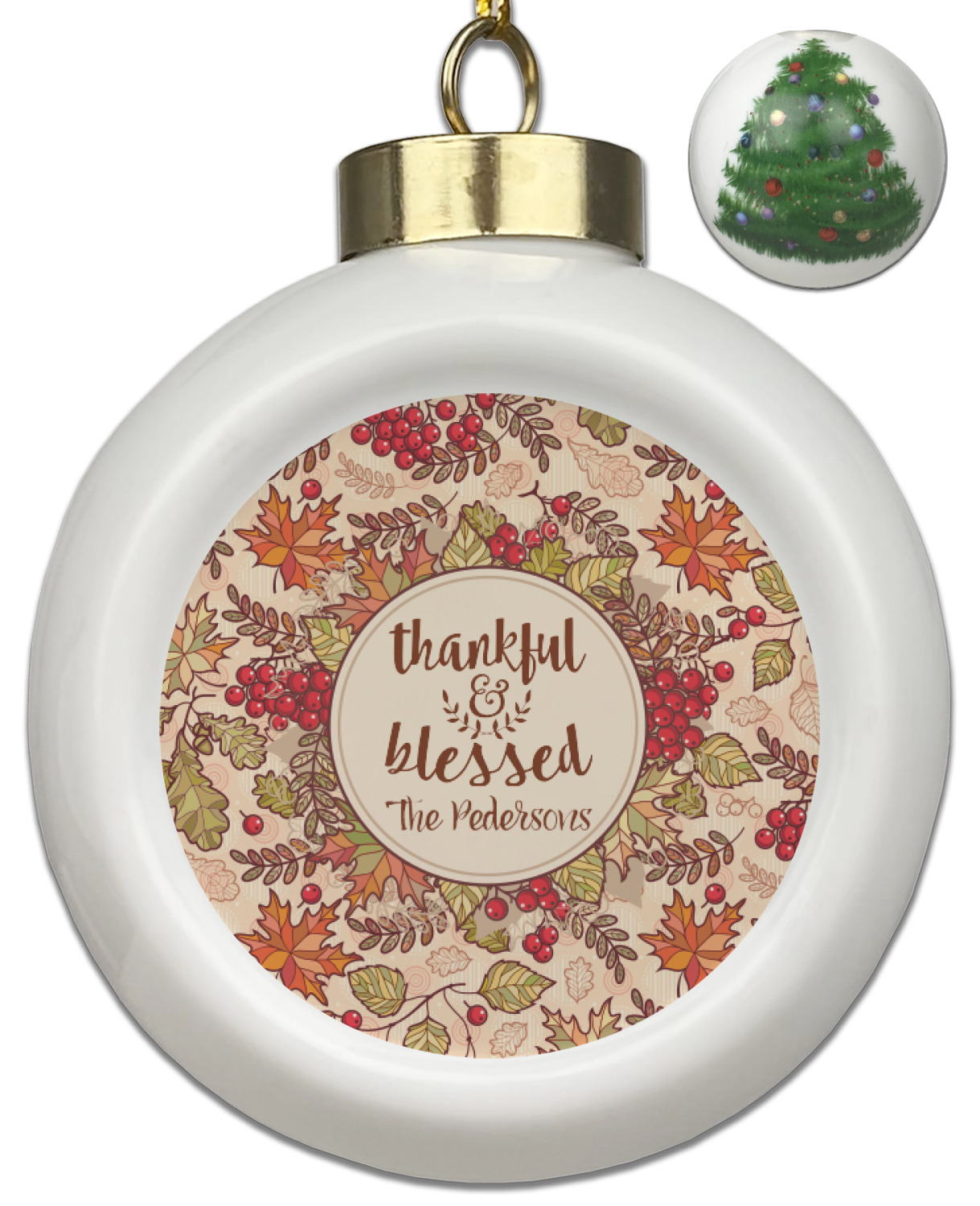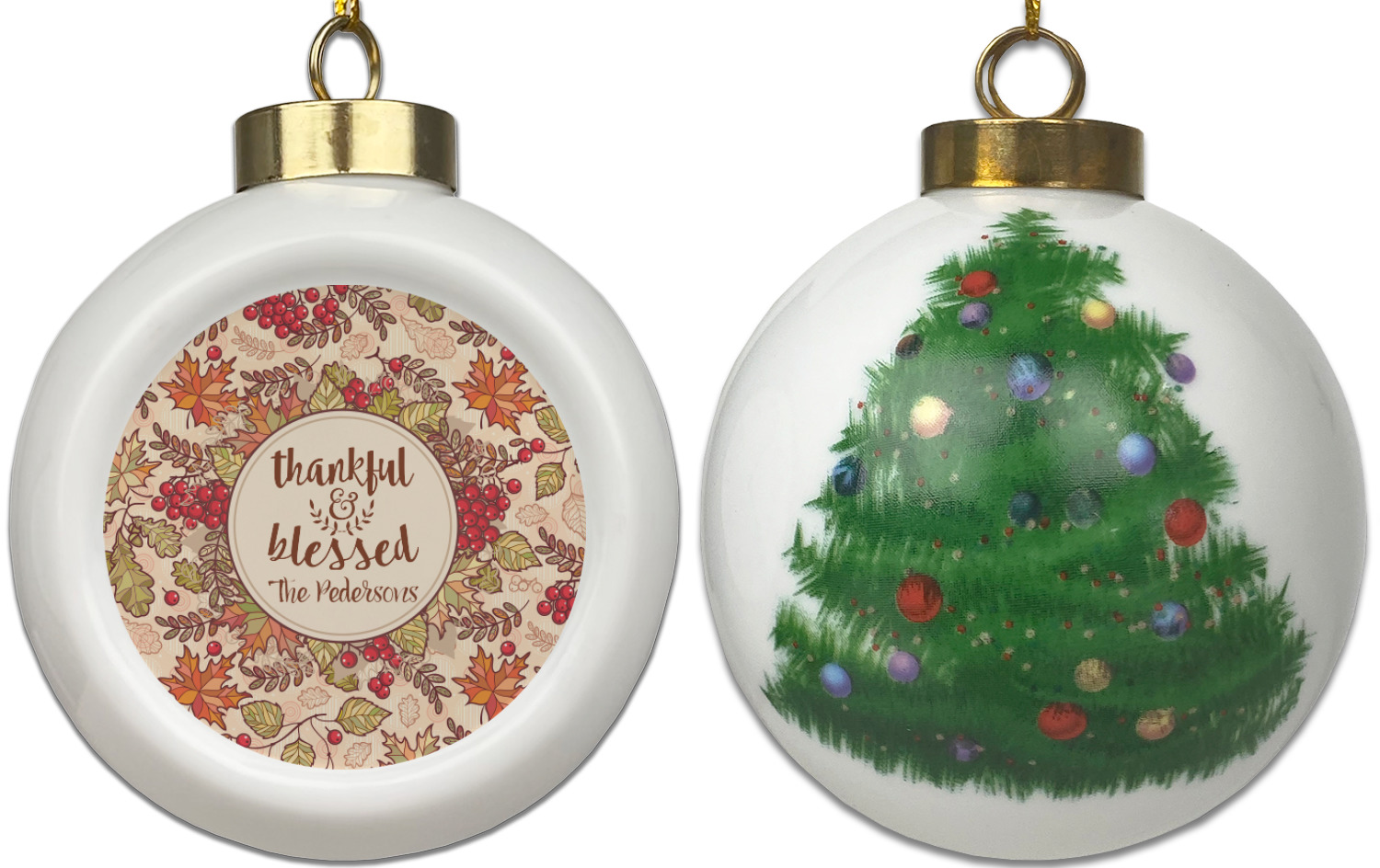 Our Christmas ornaments are a unique ceramic ball shape with a twist as it has a flat face to display your custom design! Select from one of our two design types - Christmas Tree or Poinsettia Garland - to adorn the curved back of your personal design. Each ornament measures 3H x 2.5W x 2D accompanied with a gold string accent for finishing touches to hang on your beautiful Christmas tree!