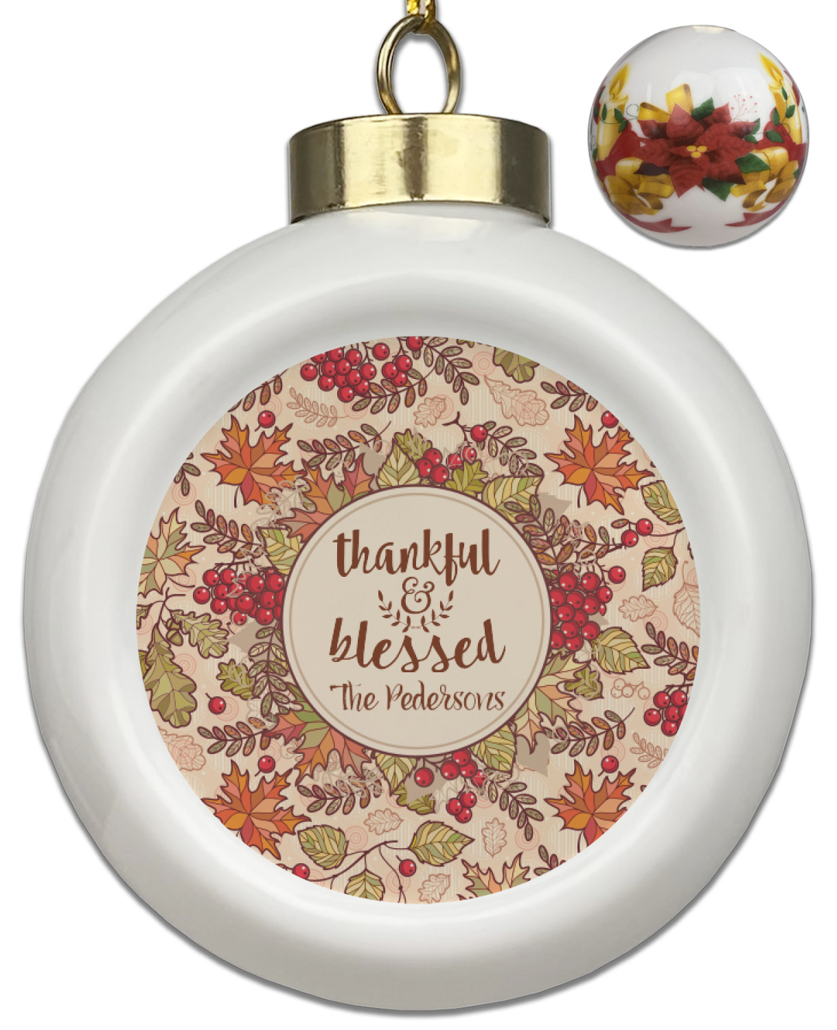 Our Christmas ornaments are a unique ceramic ball shape with a twist as it has a flat face to display your custom design! Select from one of our two design types - Christmas Tree or Poinsettia Garland - to adorn the curved back of your personal design. Each ornament measures 3H x 2.5W x 2D accompanied with a gold string accent for finishing touches to hang on your beautiful Christmas tree!