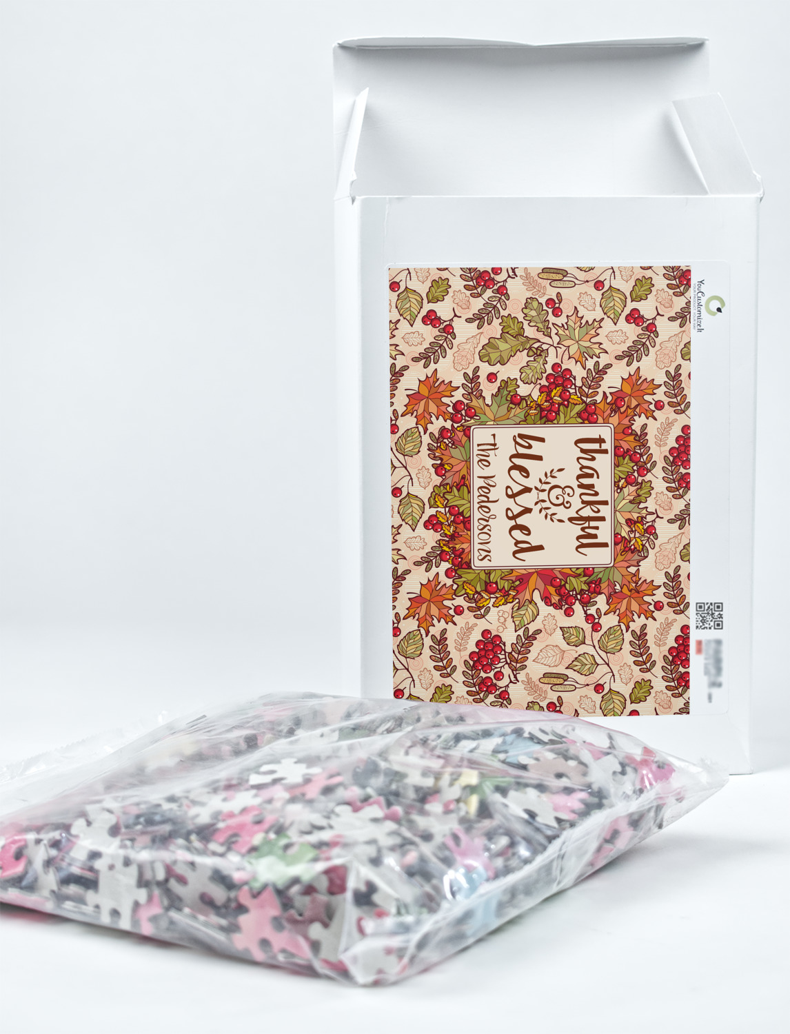 Depending on the look you are trying to achieve, you can add; a thematic pattern or background, with a photo in a frame and text or personalization to your puzzle. Basically if you can imagine it, you can design it!