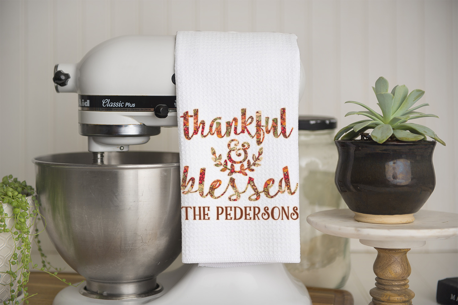 Personalized kitchen towels are pretty and practical kitchen décor accents ideal for holiday dinners and other special occasions! Customize one of our many designs or create your own with our custom design template.