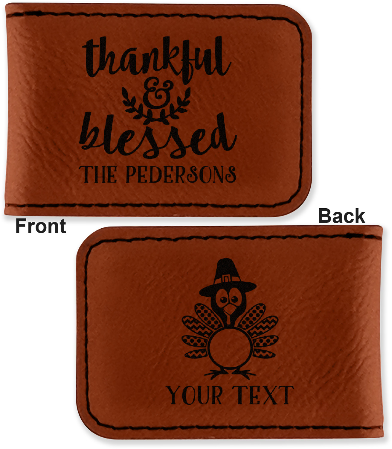 Your money clip will be laser engraved so that the design you choose will come out black. Find a fun graphic, monogram, or font to use to personalize your money clip either on just the front or the front and the back.