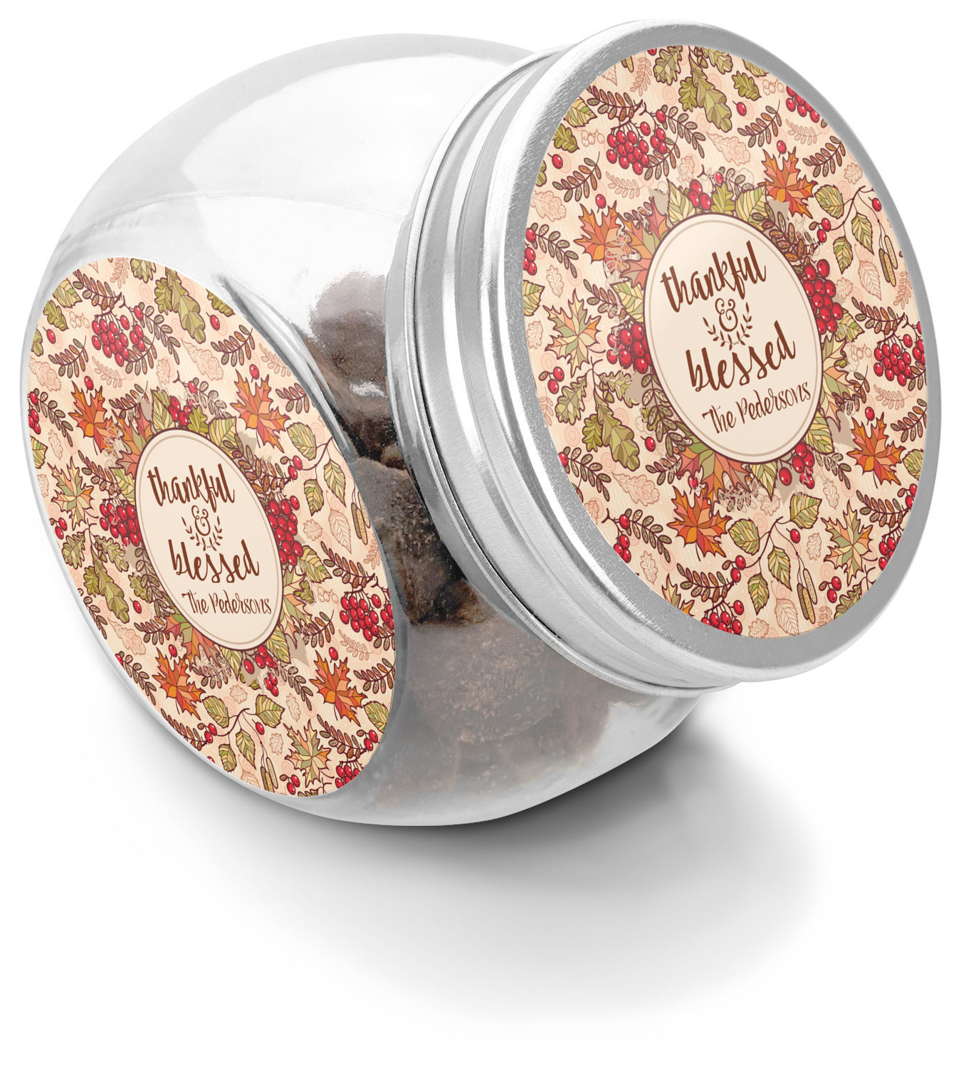 This treat jar is an excellent way to store treats for your favorite canine or feline. Moreover, their delicate, classy appearance makes them a tasteful addition to your countertop's décor. Crafted from clear glass, its unique construction and silver metal, screw-on lid allows for quick and easy access. Three, permanent, vinyl stickers are applied to both sides of the jar and lid, presenting your personalized design. The base of this glass, dog treat jar is 3.4" x 4.75", and the jar stands at 5" tall. Though on the smaller side, this jar is best suited for smaller treats or training treats.