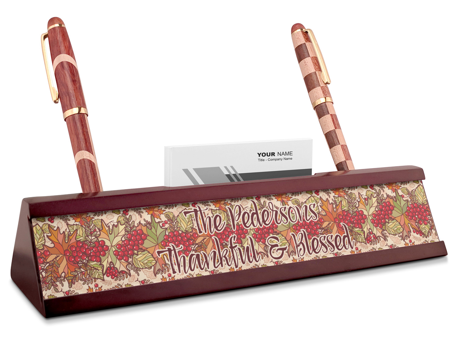 Add a sophisticated touch to your workspace with one of our name plates! These desk plaques even include a suave business card holder that will be sure to impress all of your clients!