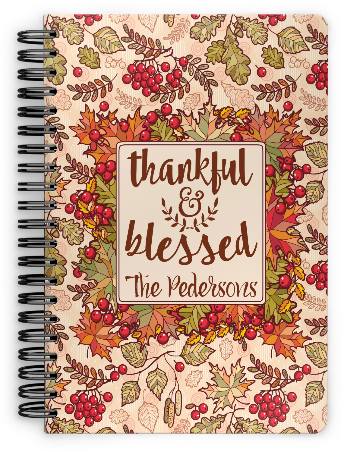 This spiral notebook includes 75 sheets of thick, ruled paper. The front and back of this custom notebook is made of a robust, laminate, plastic covering. We print your personalization on these two panels, underneath a glossy finish, which emphasizes the colors of your design. The two panels and the sheets of paper are held together by a sturdy, black coil. The paper within your bound notebook is perforated for easy, clean tearing.