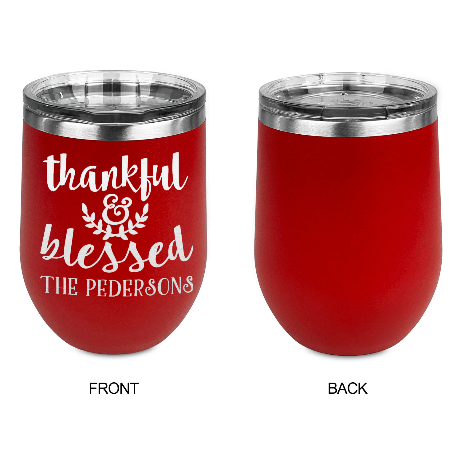 Design your wine tumbler with a cool graphic or quote. Even put your initials or monogram! These cups are laser engraved, which looks extra sharp on the metal tumbler.