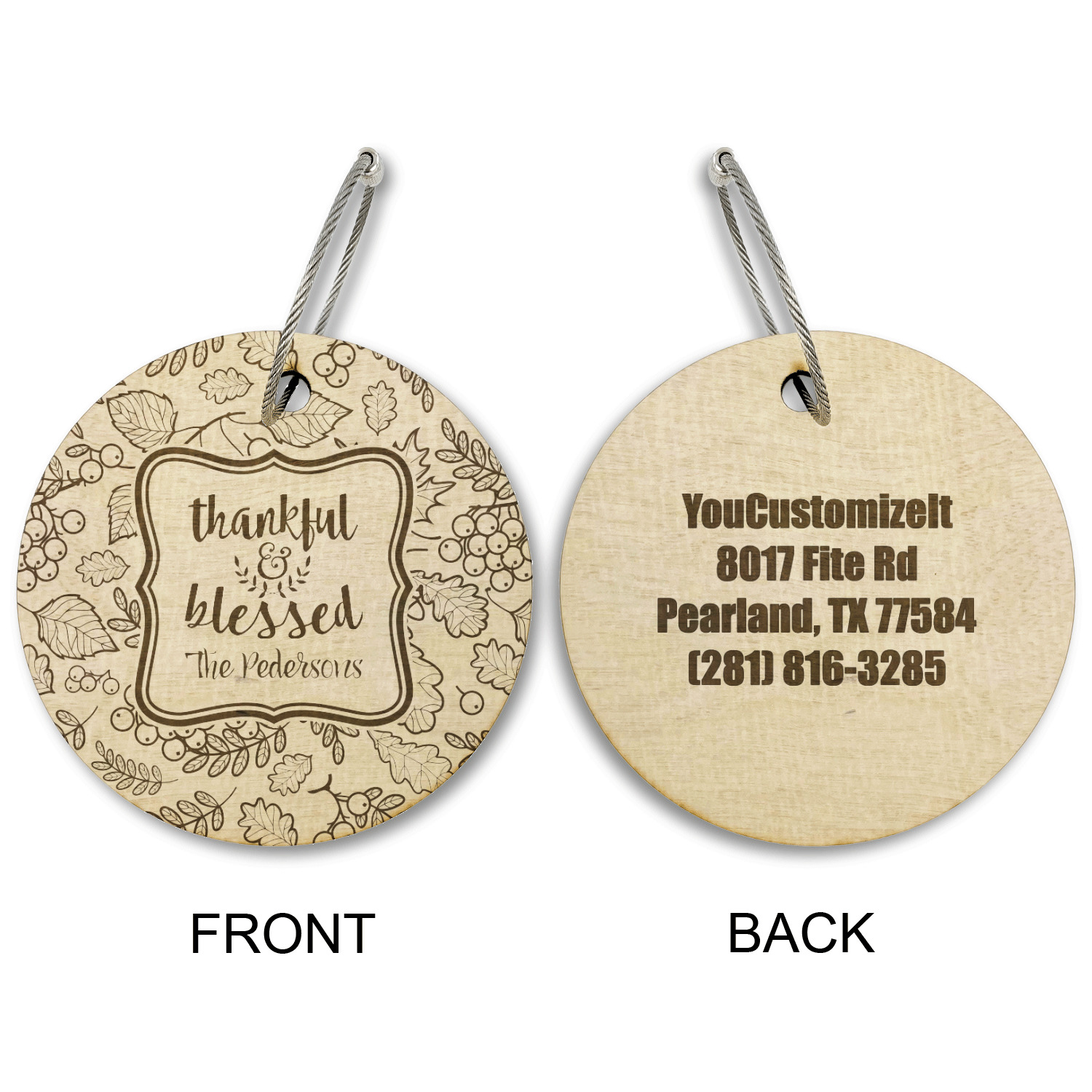 Made from a premium hardwood, these luggage tags are laser engraved and cut just for you. The front contains your design of choice and the back has your contact information to ensure your luggage gets back to you if ever lost.