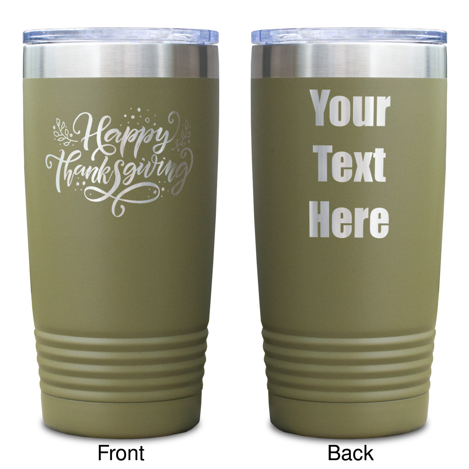 Available in 8 unique colors, these cups are crafted from 18/8 stainless steel and powder coated for their durable finish. With the 8 colors being Black, Pink, Red, Teal, White, Grey, Royal Blue, and Olive Green, you are sure to find a cup to fit your personality. You can chose to engrave on the front or the front and back of the cup. Use our design studio to design your own cup and we laser engrave it for you.