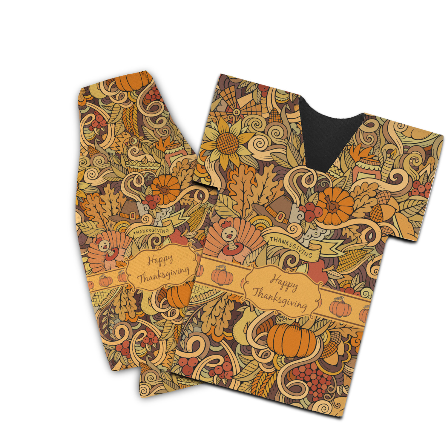 This beautiful thanksgiving design is hand drawn and includes many thanksgiving as well as fall traditions. The design colors represent all the beautiful fall colors of brown and orange. We have this pattern available to you in two colors - one is in the classic fall colors of browns and oranges, while the other background is brighter and also includes more reds and greens. We have chosen to use the more classic colors - however, it is super easy to make the change in our customization system.