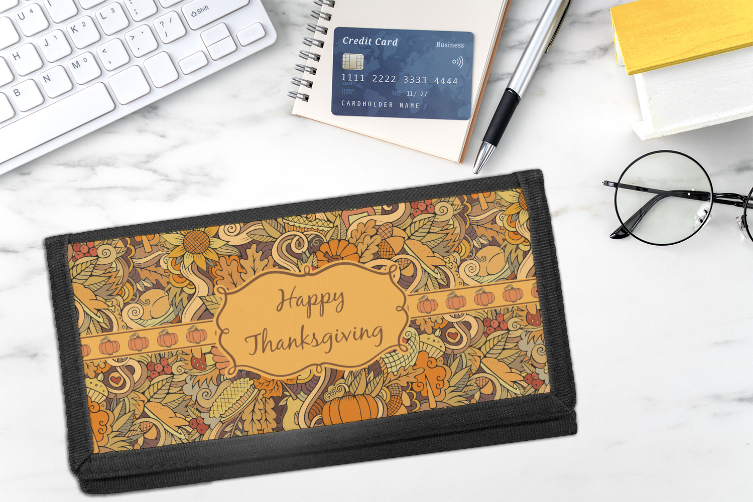 The checkbook cover is made of a durable canvas and the front flap is decorated with a vibrant design of your choosing. With 4 slots for credit cards or IDs, and 2 compartments for your checkbook register, cash, receipts, business cards, and more; this checkbook cover could easily double as a wallet.