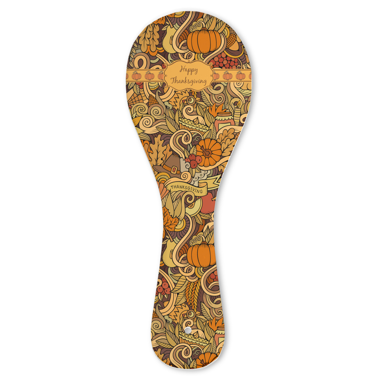 This beautiful thanksgiving design is hand drawn and includes many thanksgiving as well as fall traditions. The design colors represent all the beautiful fall colors of brown and orange. We have this pattern available to you in two colors - one is in the classic fall colors of browns and oranges, while the other background is brighter and also includes more reds and greens. We have chosen to use the more classic colors - however, it is super easy to make the change in our customization system.
