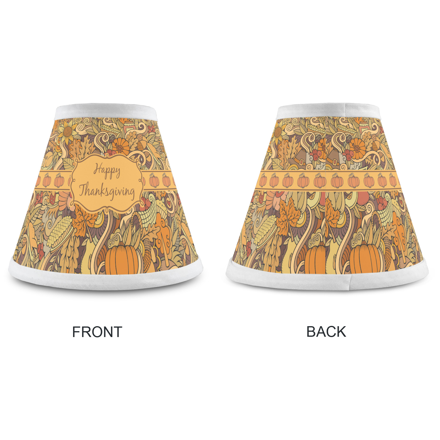 This beautiful thanksgiving design is hand drawn and includes many thanksgiving as well as fall traditions. The design colors represent all the beautiful fall colors of brown and orange. We have this pattern available to you in two colors - one is in the classic fall colors of browns and oranges, while the other background is brighter and also includes more reds and greens. We have chosen to use the more classic colors - however, it is super easy to make the change in our customization system.