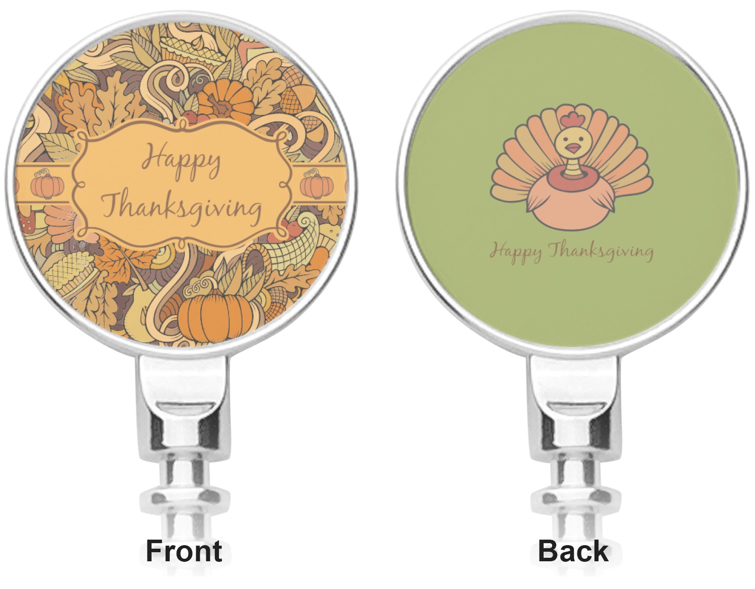 We also chose our newest ribbon - which is a build on the classic ribbon and can include any graphic - and so we chose the pumpkin. We chose the curly label with "Happy Thanksgiving" for our personalization.