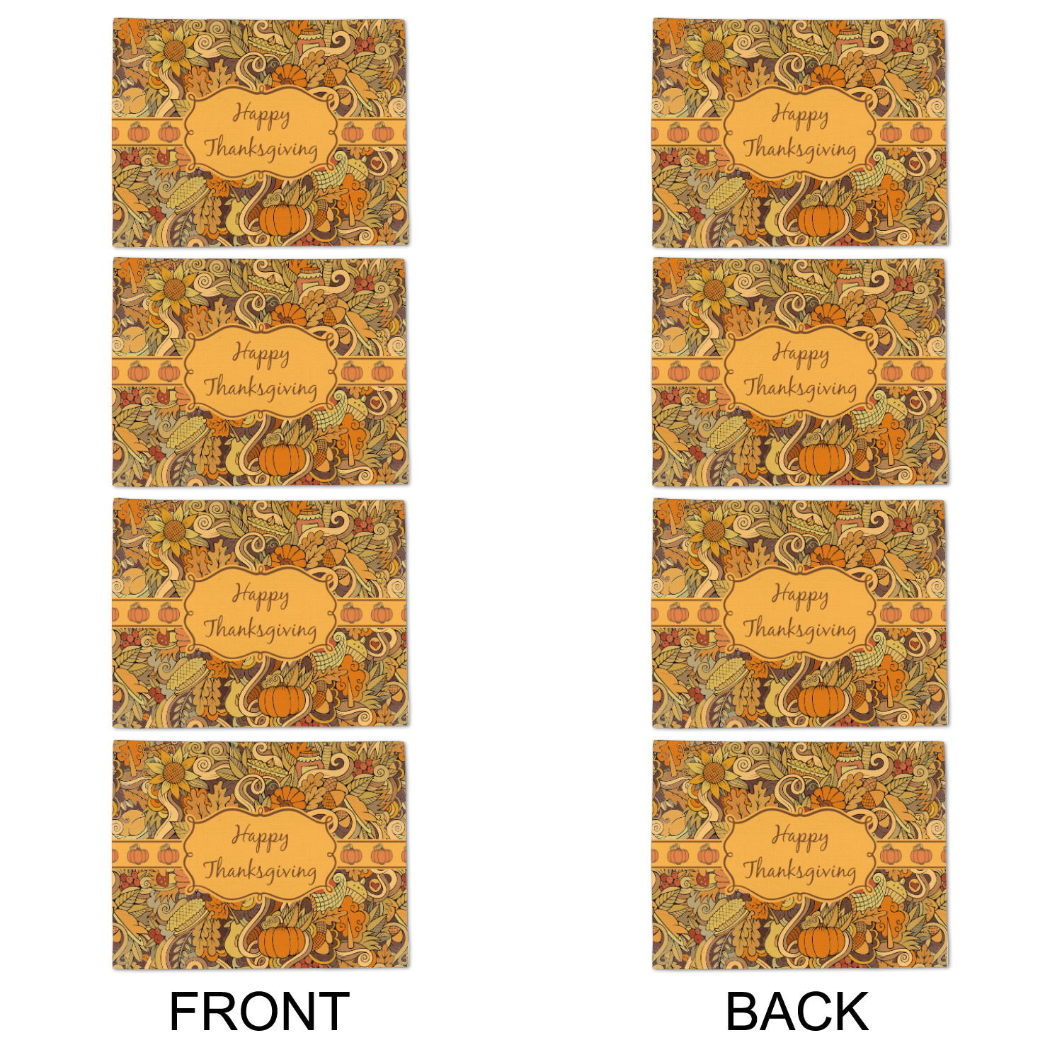 This beautiful thanksgiving design is hand drawn and includes many thanksgiving as well as fall traditions. The design colors represent all the beautiful fall colors of brown and orange. We have this pattern available to you in two colors - one is in the classic fall colors of browns and oranges, while the other background is brighter and also includes more reds and greens. We have chosen to use the more classic colors - however, it is super easy to make the change in our customization system.