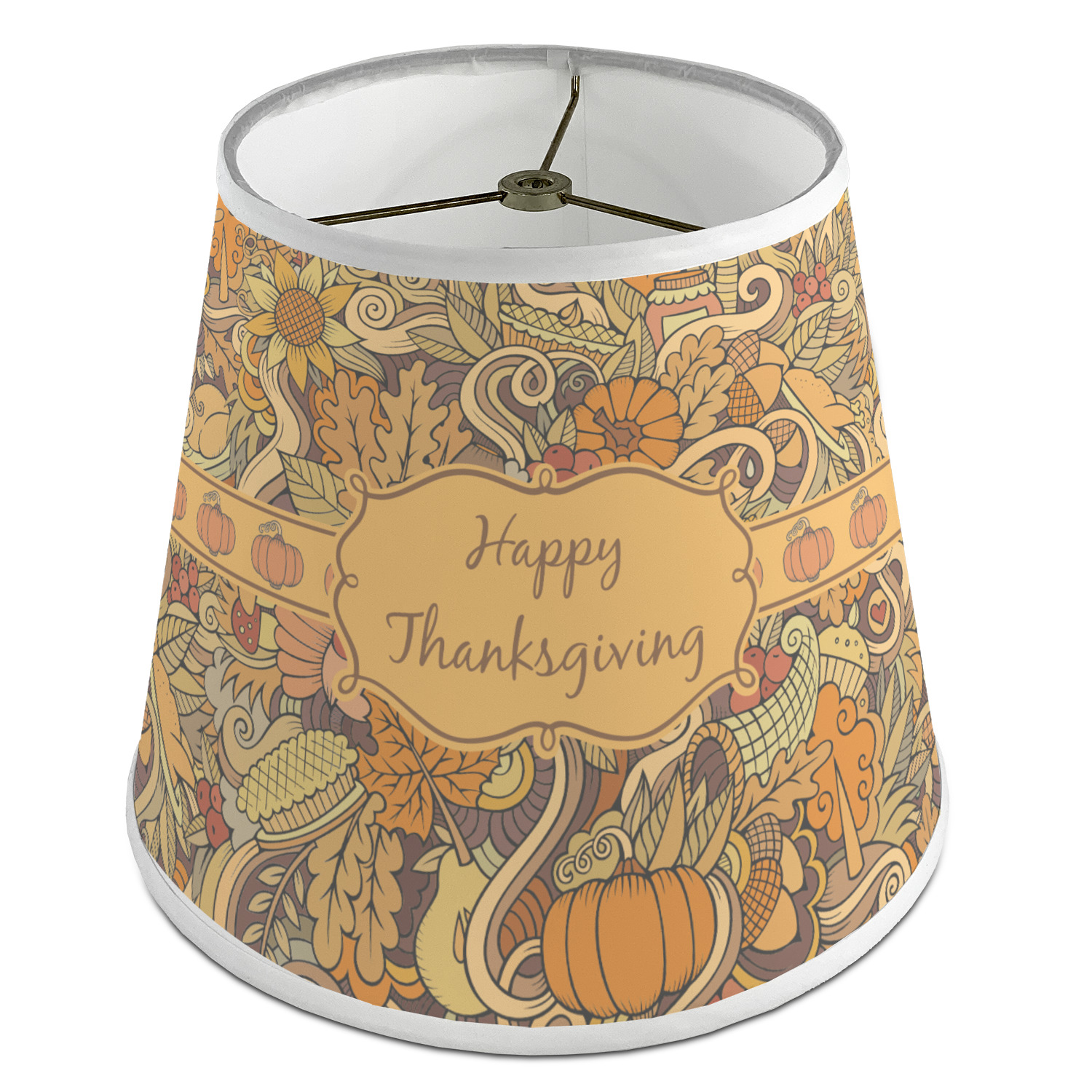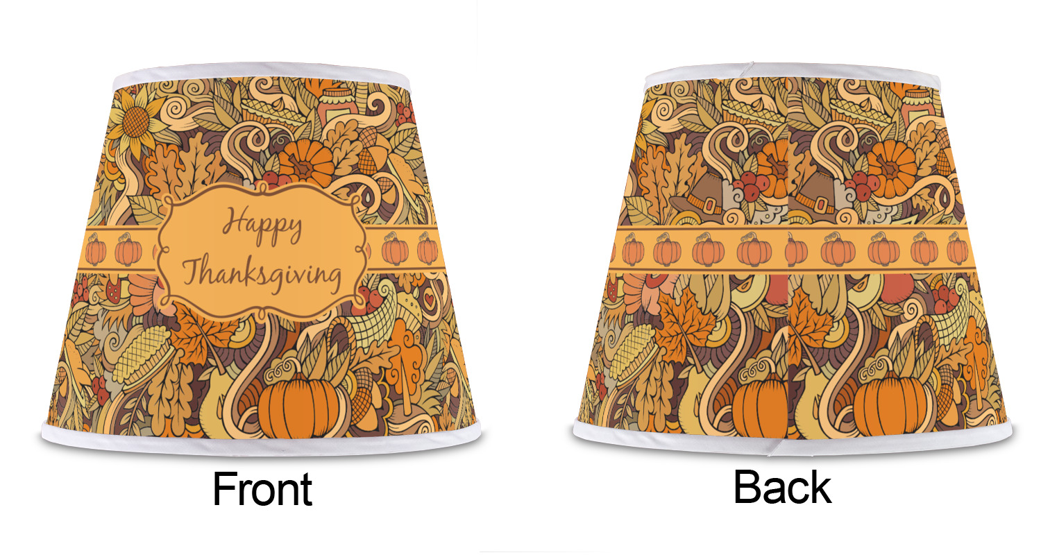 This beautiful thanksgiving design is hand drawn and includes many thanksgiving as well as fall traditions. The design colors represent all the beautiful fall colors of brown and orange. We have this pattern available to you in two colors - one is in the classic fall colors of browns and oranges, while the other background is brighter and also includes more reds and greens. We have chosen to use the more classic colors - however, it is super easy to make the change in our customization system.