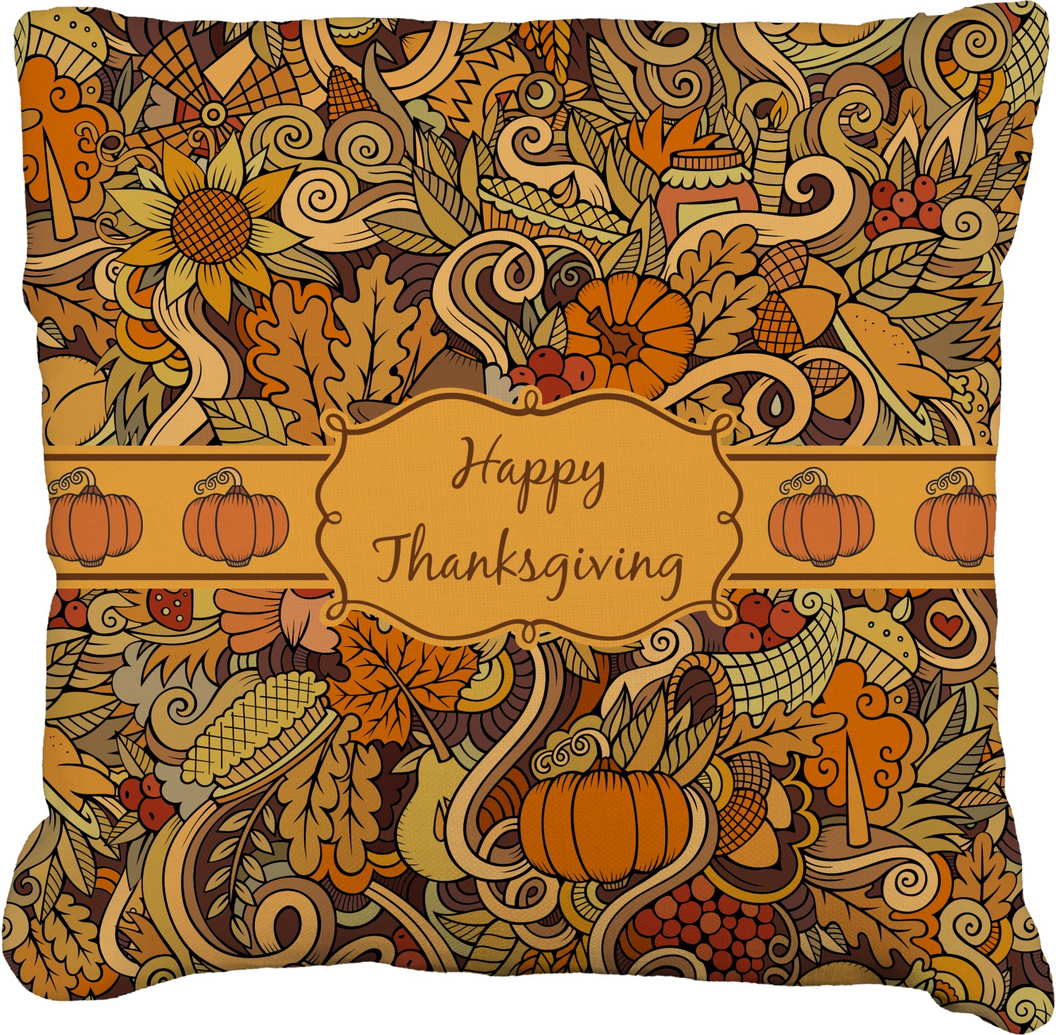 This beautiful thanksgiving design is hand drawn and includes many thanksgiving as well as fall traditions. The design colors represent all the beautiful fall colors of brown and orange. We have this pattern available to you in two colors - one is in the classic fall colors of browns and oranges, while the other background is brighter and also includes more reds and greens. We have chosen to use the more classic colors - however, it is super easy to make the change in our customization system.