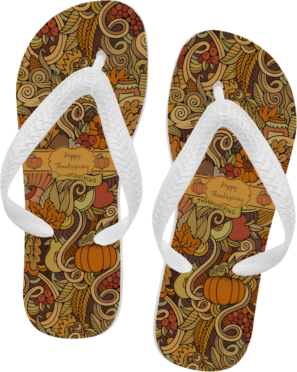 This beautiful thanksgiving design is hand drawn and includes many thanksgiving as well as fall traditions. The design colors represent all the beautiful fall colors of brown and orange. We have this pattern available to you in two colors - one is in the classic fall colors of browns and oranges, while the other background is brighter and also includes more reds and greens. We have chosen to use the more classic colors - however, it is super easy to make the change in our customization system.