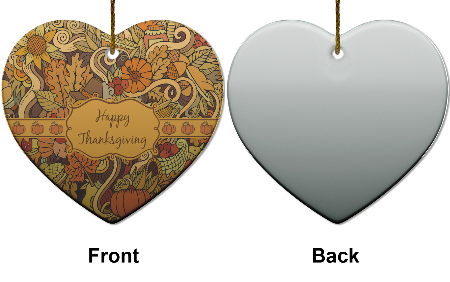 This beautiful thanksgiving design is hand drawn and includes many thanksgiving as well as fall traditions. The design colors represent all the beautiful fall colors of brown and orange. We have this pattern available to you in two colors - one is in the classic fall colors of browns and oranges, while the other background is brighter and also includes more reds and greens. We have chosen to use the more classic colors - however, it is super easy to make the change in our customization system.