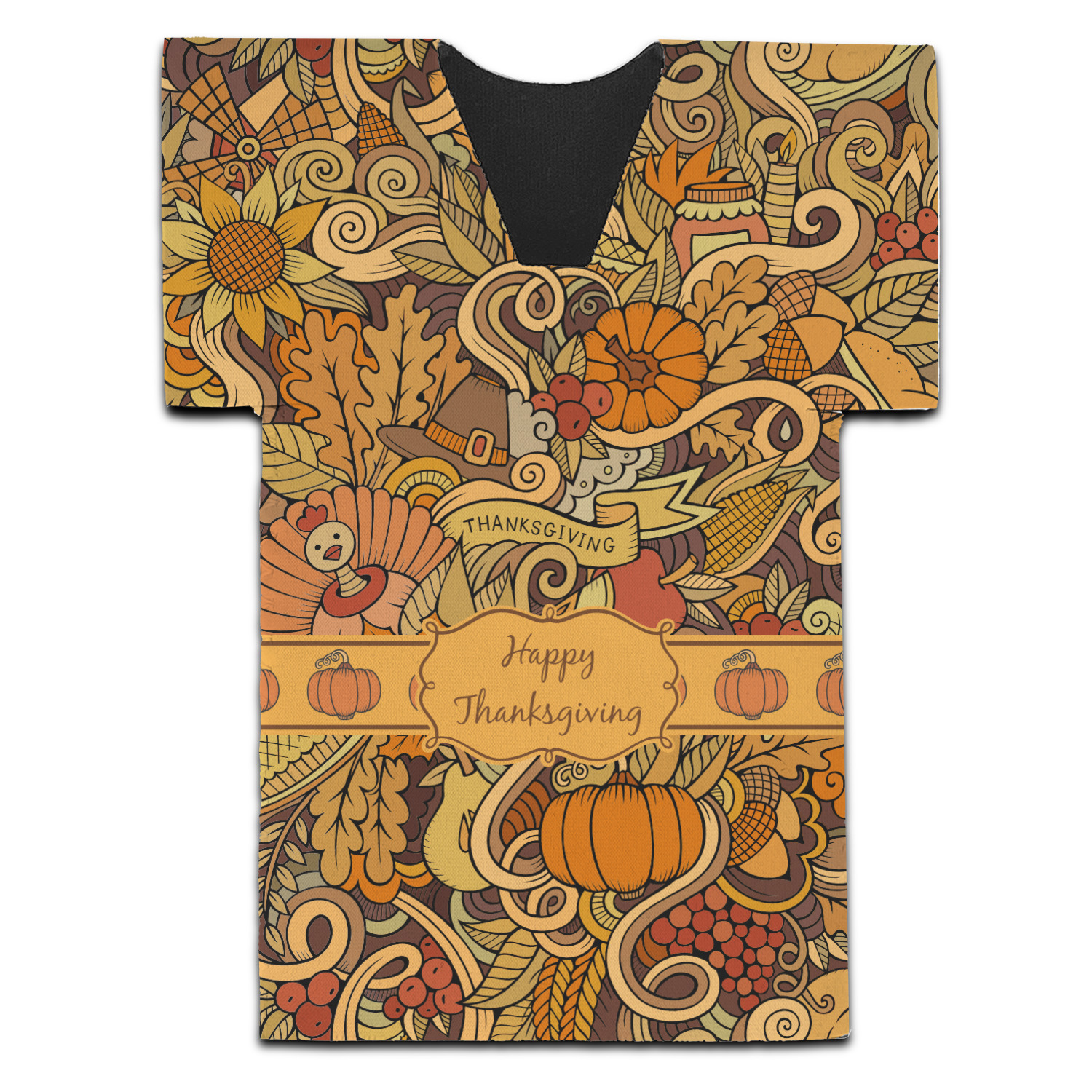This beautiful thanksgiving design is hand drawn and includes many thanksgiving as well as fall traditions. The design colors represent all the beautiful fall colors of brown and orange. We have this pattern available to you in two colors - one is in the classic fall colors of browns and oranges, while the other background is brighter and also includes more reds and greens. We have chosen to use the more classic colors - however, it is super easy to make the change in our customization system.