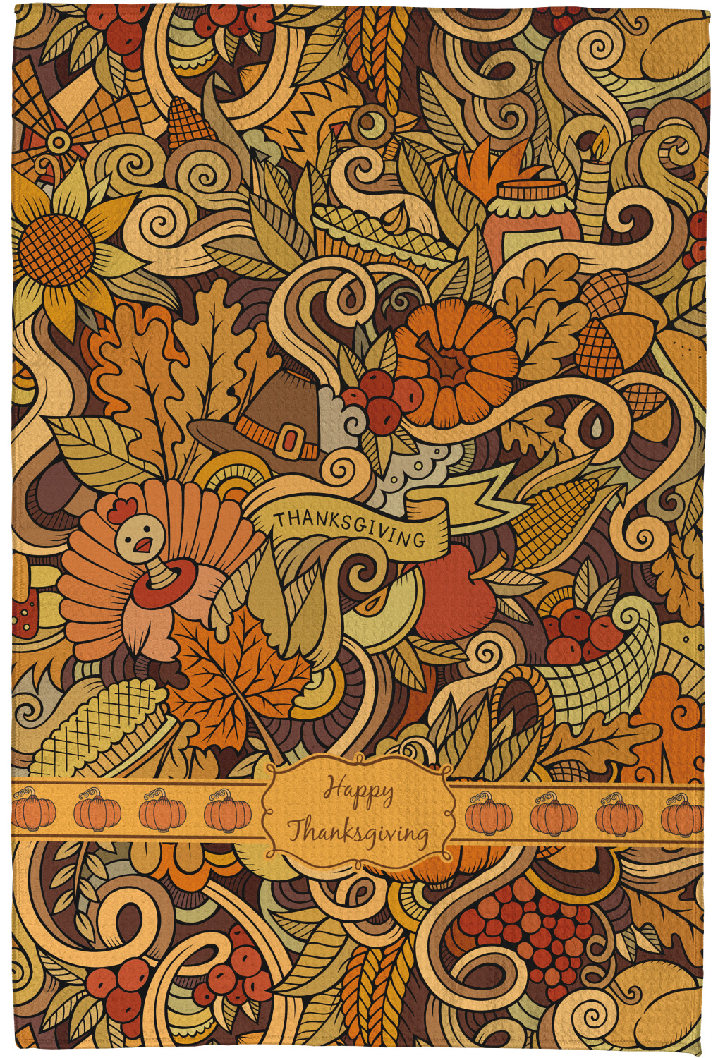 This beautiful thanksgiving design is hand drawn and includes many thanksgiving as well as fall traditions. The design colors represent all the beautiful fall colors of brown and orange. We have this pattern available to you in two colors - one is in the classic fall colors of browns and oranges, while the other background is brighter and also includes more reds and greens. We have chosen to use the more classic colors - however, it is super easy to make the change in our customization system.
