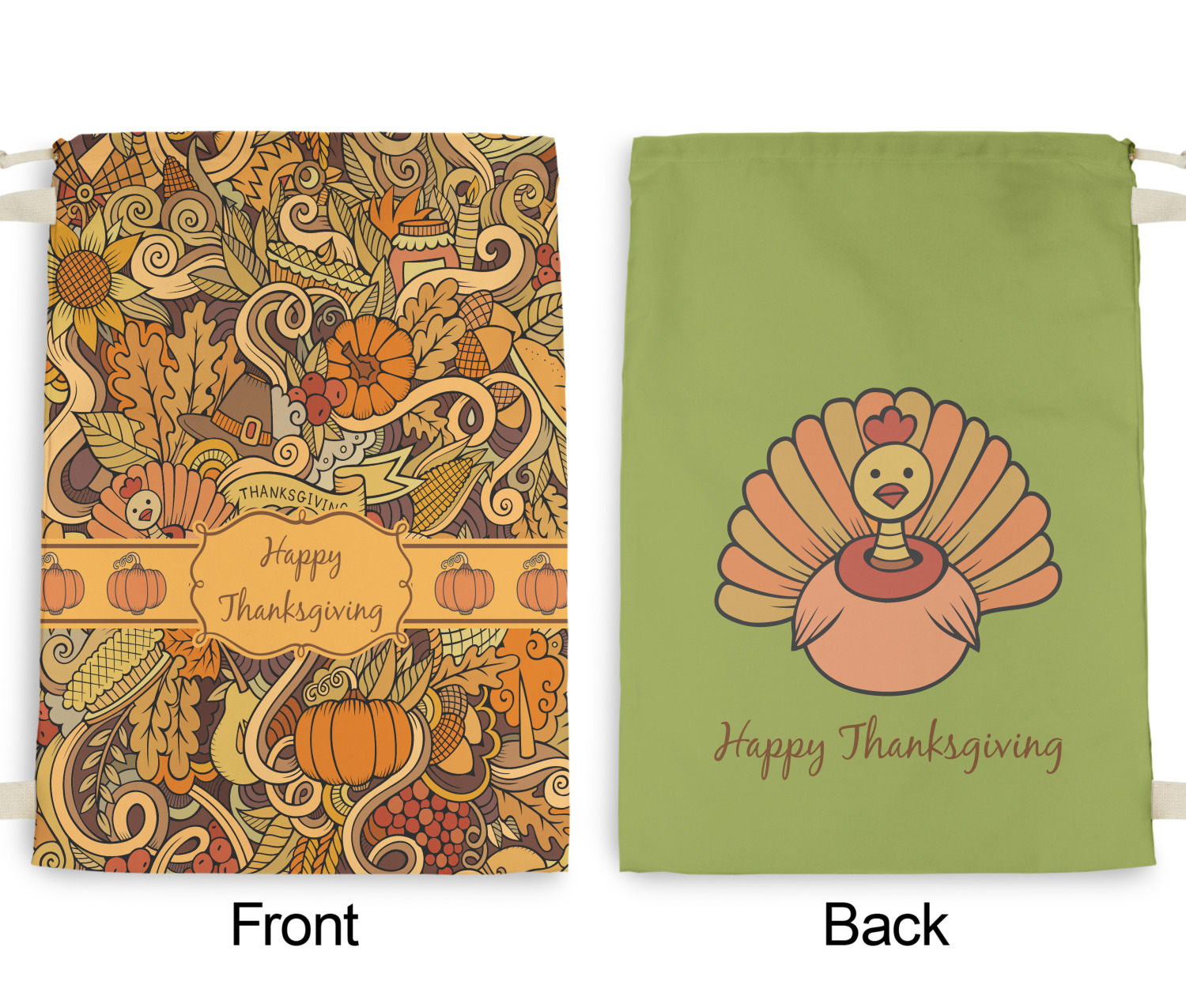 This beautiful thanksgiving design is hand drawn and includes many thanksgiving as well as fall traditions. The design colors represent all the beautiful fall colors of brown and orange. We have this pattern available to you in two colors - one is in the classic fall colors of browns and oranges, while the other background is brighter and also includes more reds and greens. We have chosen to use the more classic colors - however, it is super easy to make the change in our customization system.