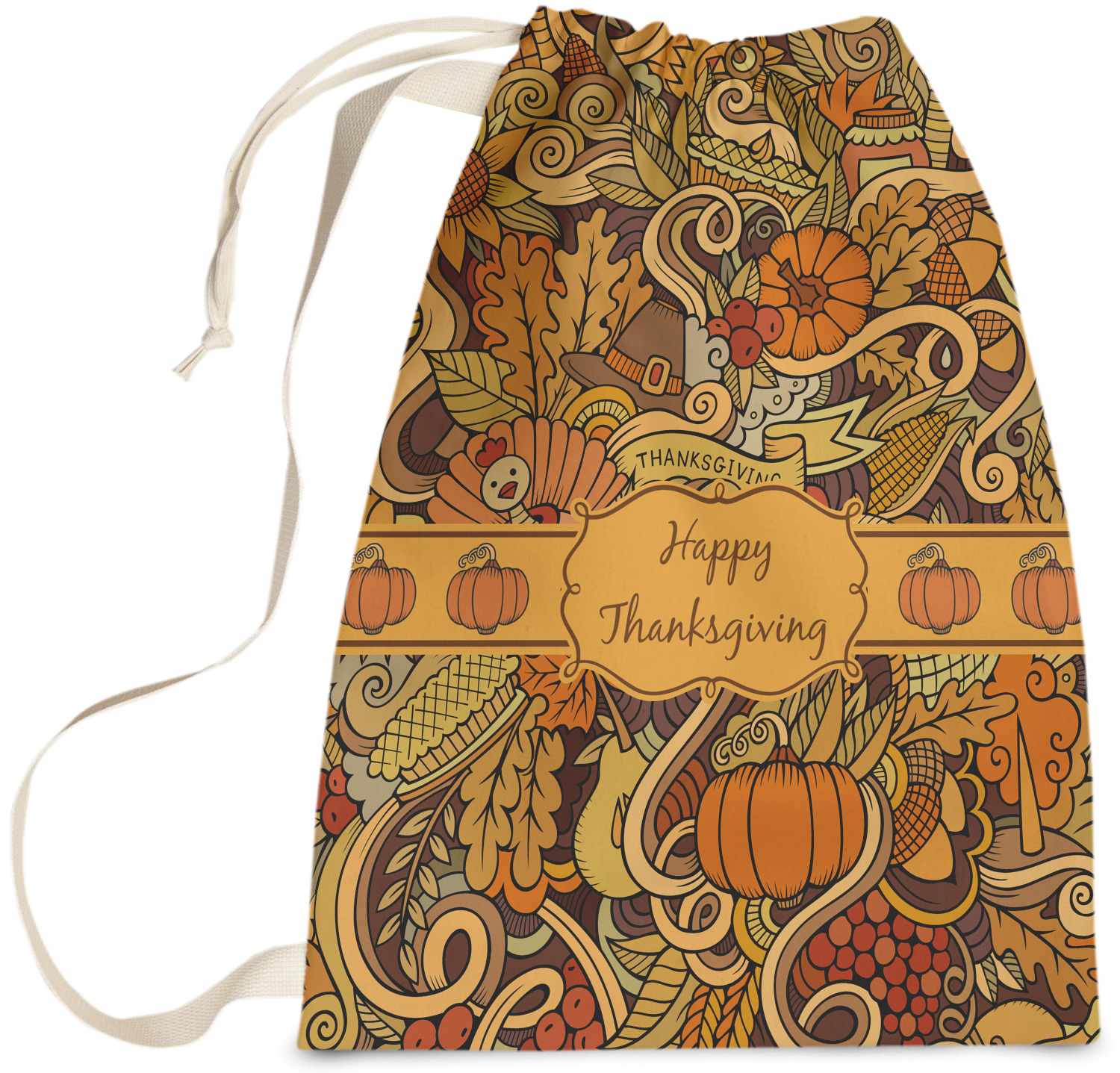Carry your laundry in style with these customized laundry bags. Available in two sizes, featuring a natural colored woven strap and a cinch cord, these bags hold a lot of clothes or anything else you want to fit in them.