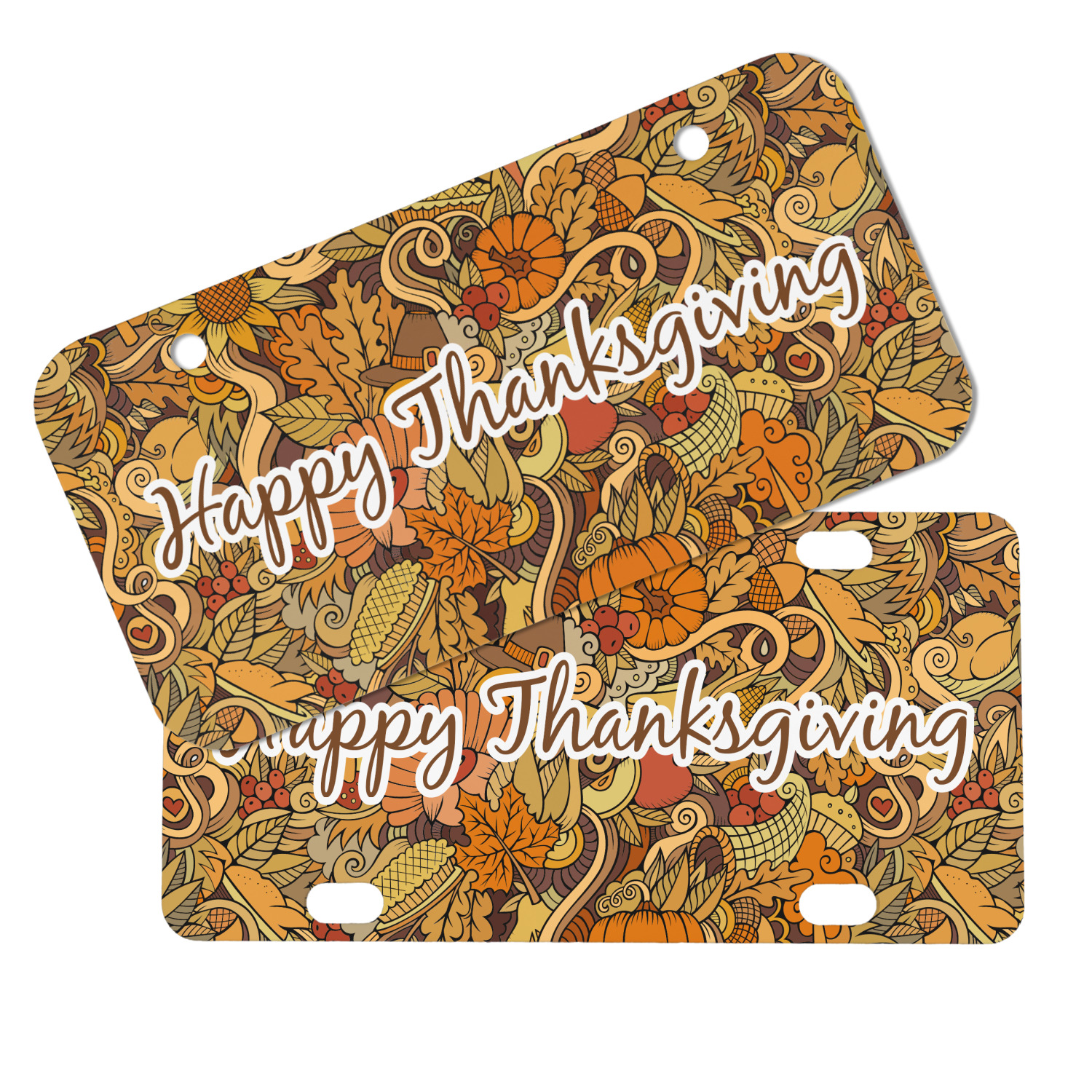 This beautiful thanksgiving design is hand drawn and includes many thanksgiving as well as fall traditions. The design colors represent all the beautiful fall colors of brown and orange. We have this pattern available to you in two colors - one is in the classic fall colors of browns and oranges, while the other background is brighter and also includes more reds and greens. We have chosen to use the more classic colors - however, it is super easy to make the change in our customization system.