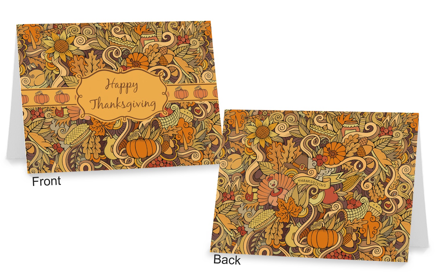 Our custom folded note cards are printed on premium 100lb. card stock and comes with white envelopes. The note card measure 5.5 by 4.25 inches and are blank on the inside for your handwritten message.