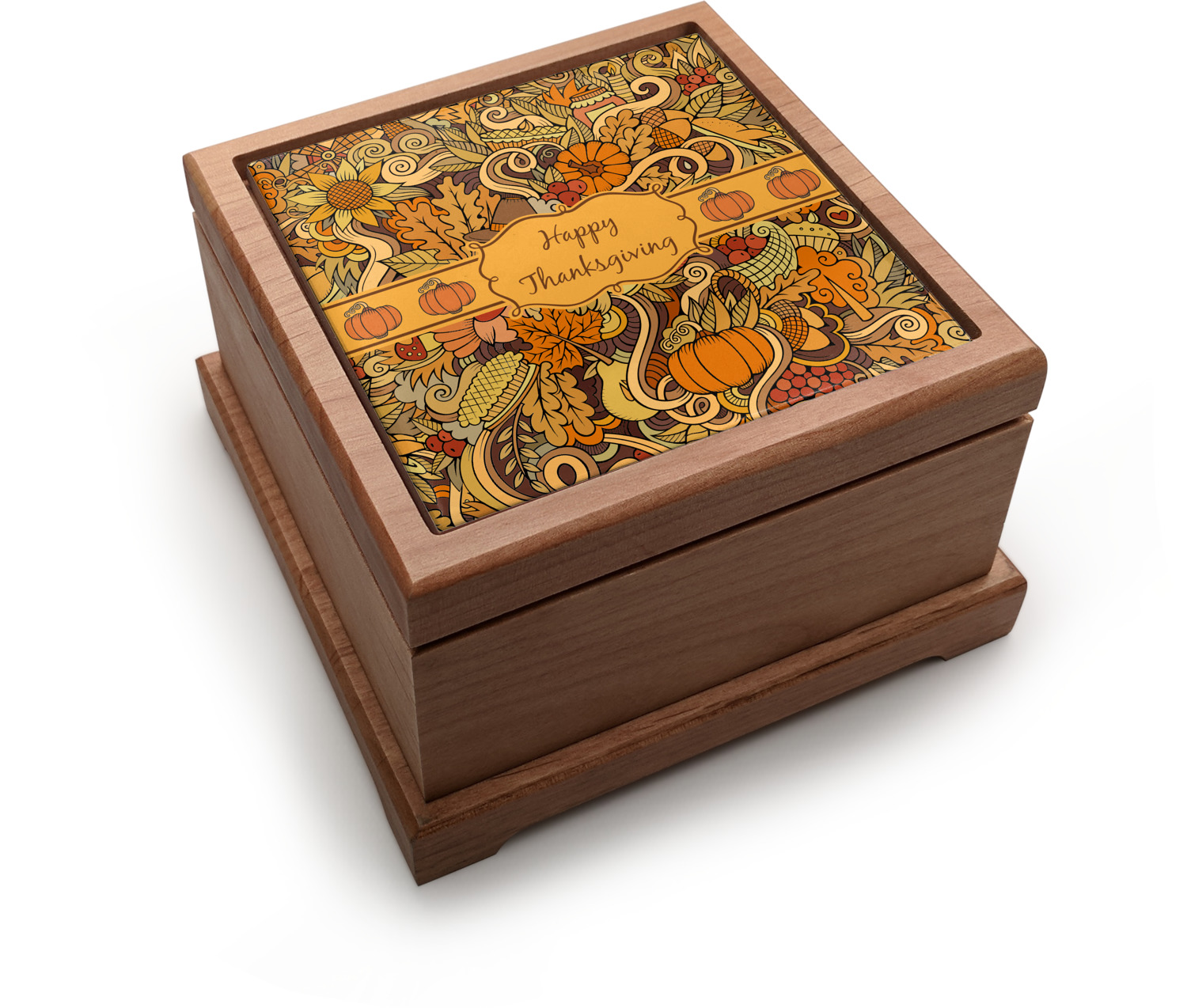 This beautiful thanksgiving design is hand drawn and includes many thanksgiving as well as fall traditions. The design colors represent all the beautiful fall colors of brown and orange. We have this pattern available to you in two colors - one is in the classic fall colors of browns and oranges, while the other background is brighter and also includes more reds and greens. We have chosen to use the more classic colors - however, it is super easy to make the change in our customization system.