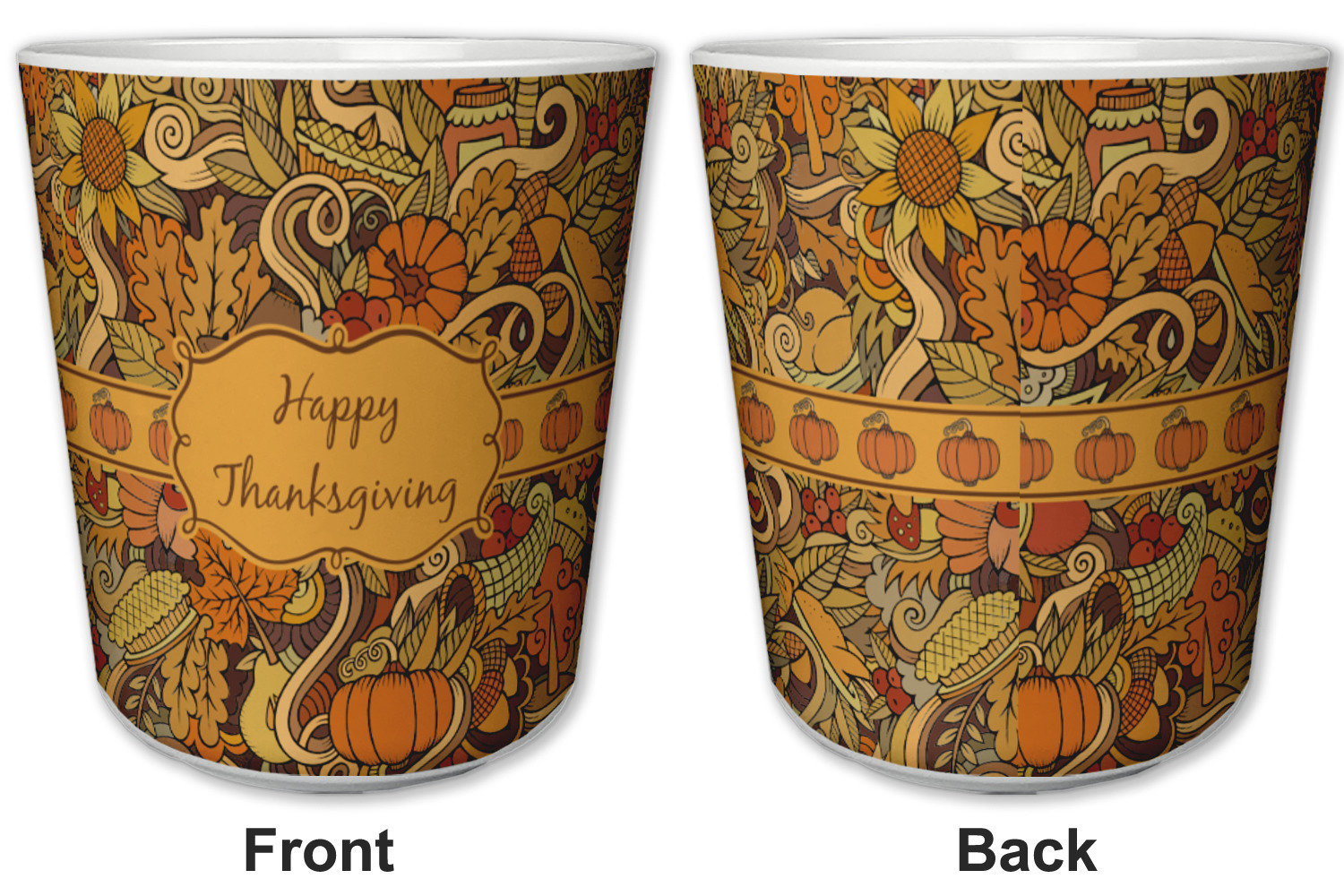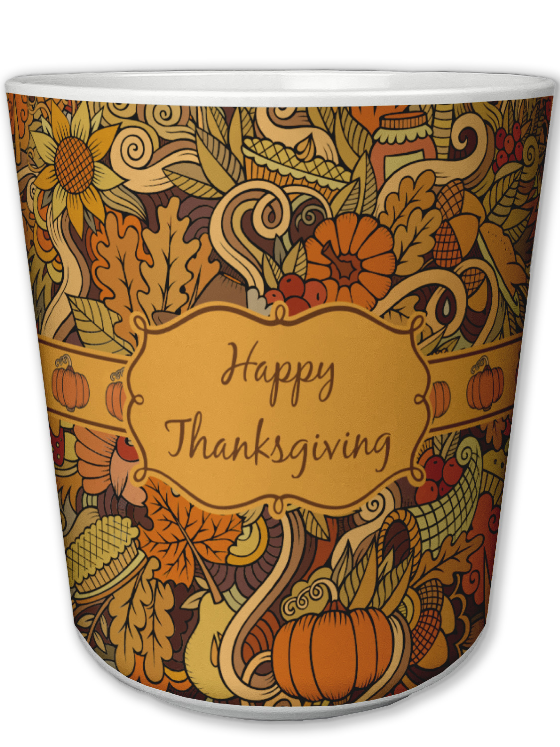 This beautiful thanksgiving design is hand drawn and includes many thanksgiving as well as fall traditions. The design colors represent all the beautiful fall colors of brown and orange. We have this pattern available to you in two colors - one is in the classic fall colors of browns and oranges, while the other background is brighter and also includes more reds and greens. We have chosen to use the more classic colors - however, it is super easy to make the change in our customization system.