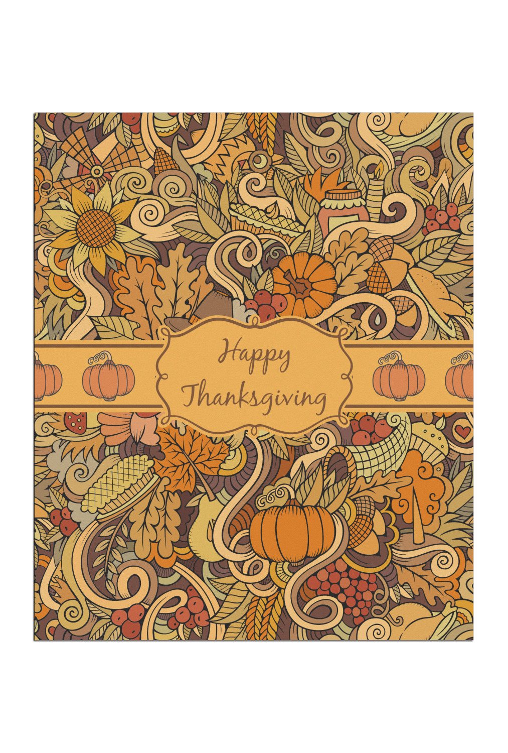 This beautiful thanksgiving design is hand drawn and includes many thanksgiving as well as fall traditions. The design colors represent all the beautiful fall colors of brown and orange. We have this pattern available to you in two colors - one is in the classic fall colors of browns and oranges, while the other background is brighter and also includes more reds and greens. We have chosen to use the more classic colors - however, it is super easy to make the change in our customization system.
