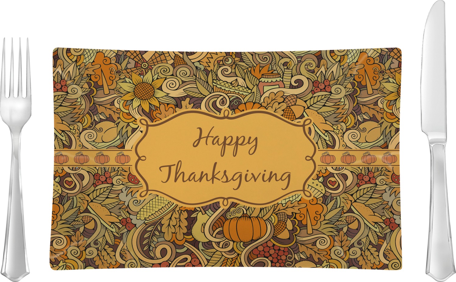 This beautiful thanksgiving design is hand drawn and includes many thanksgiving as well as fall traditions. The design colors represent all the beautiful fall colors of brown and orange. We have this pattern available to you in two colors - one is in the classic fall colors of browns and oranges, while the other background is brighter and also includes more reds and greens. We have chosen to use the more classic colors - however, it is super easy to make the change in our customization system.