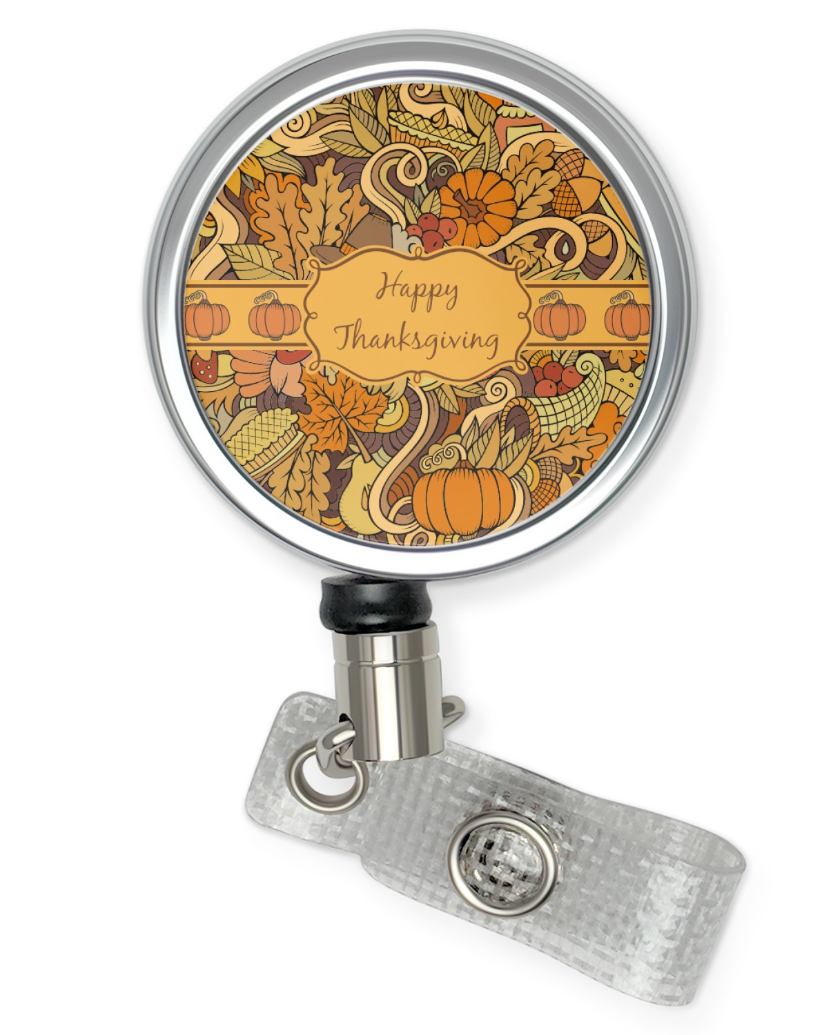 We also chose our newest ribbon - which is a build on the classic ribbon and can include any graphic - and so we chose the pumpkin. We chose the curly label with "Happy Thanksgiving" for our personalization.